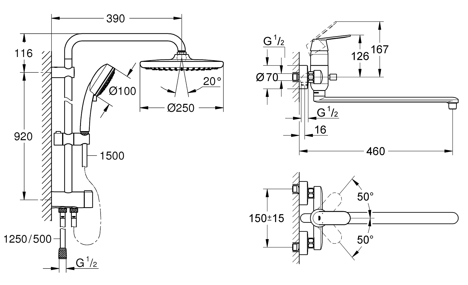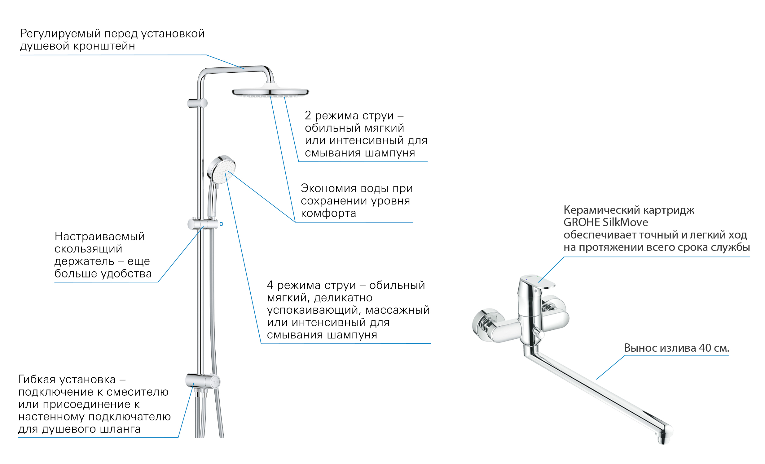 Душевая стойка с длинным изливом Grohe Eurosmart Cosmopolitan