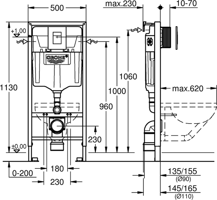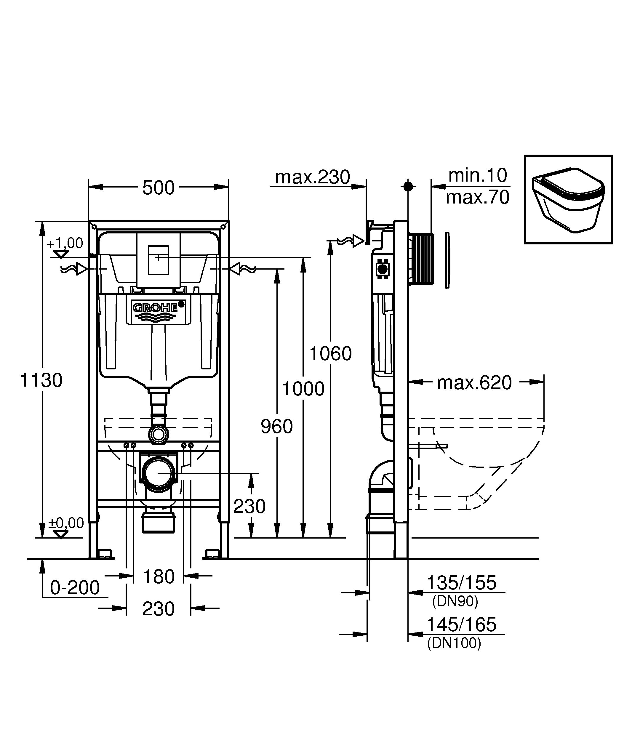 Система инсталляции для унитаза GROHE Rapid SL 3 в 1 с панелью смыва Skate Cosmopolitan (38772001)
