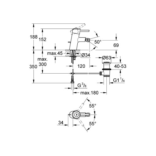 Однорычажный смеситель для биде Grohe Concetto 32208000