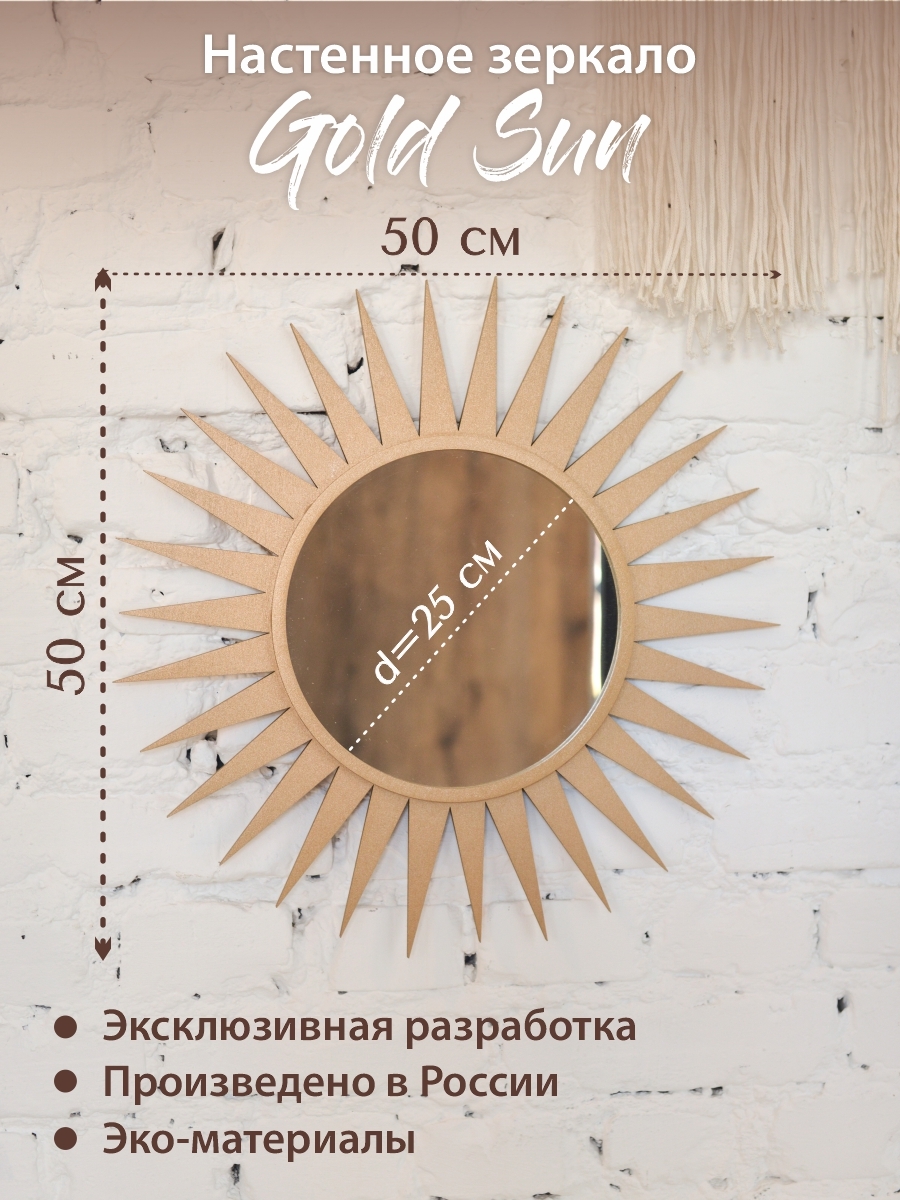 Зеркало интерьерное, Зеркало настенное Groza "Boho / Бохо", 50 см х 50 см, 1 шт
