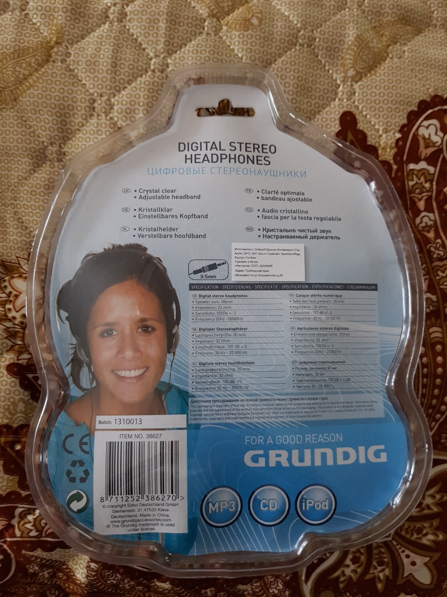 Grundig 72867 наушники проводные для телефона и компьютера с кабелем накладные, длина кабеля 5 м
