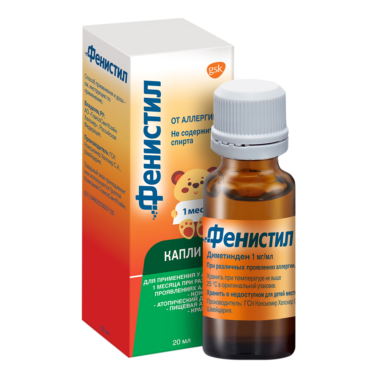 Фенистил 1 мг/мл капли для приема внутрь 20 мл