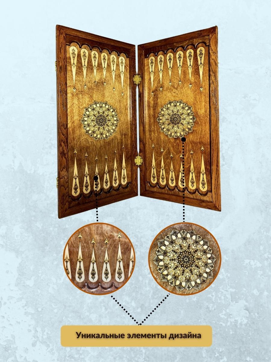 Нарды средние деревянные с эксклюзивным дизайном из натурального дуба / Медведь / 50 на 50 см