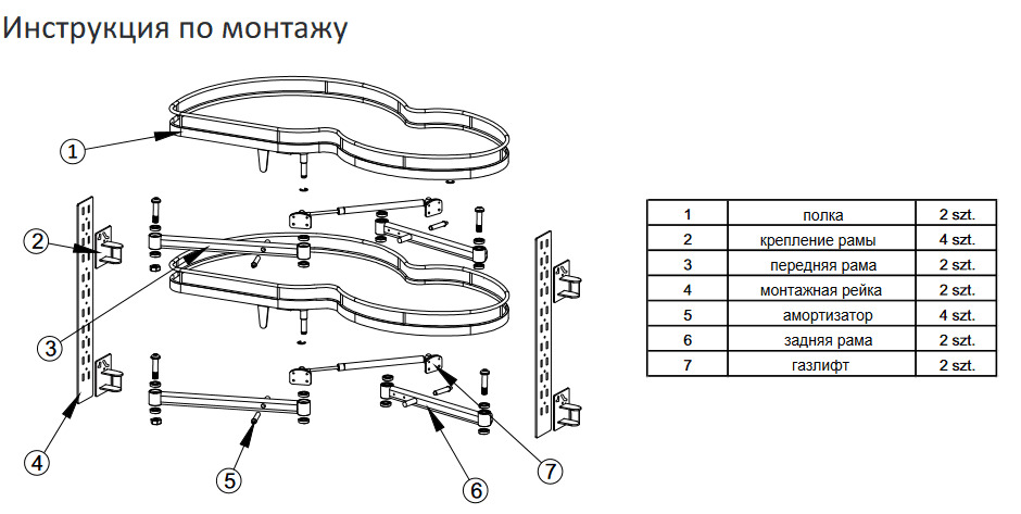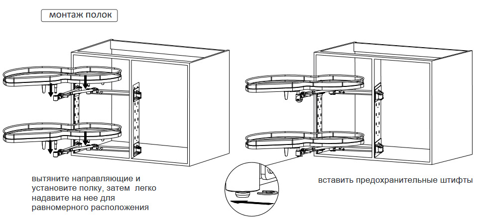Механизм выкатной для кухни с доводчиком, в модуль 800 мм, белый, правый (круглый прут, хром)