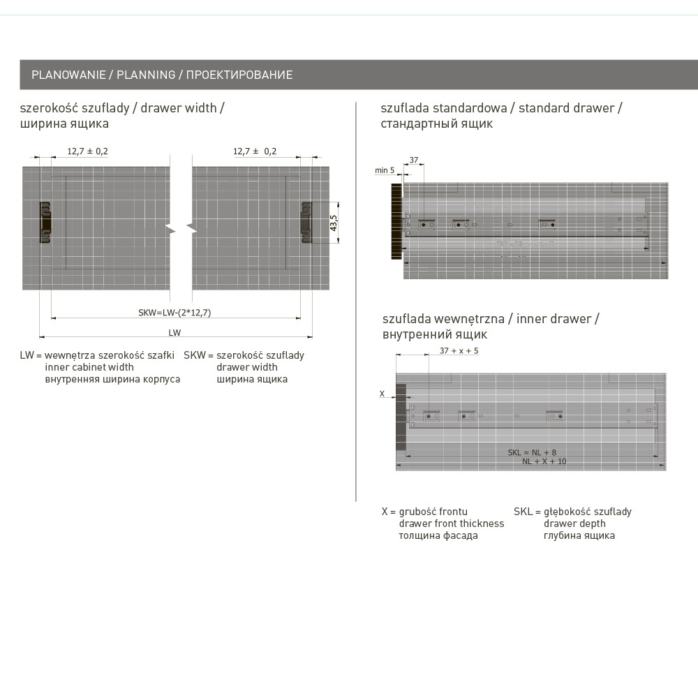 Направляющие шариковые, GTV Versalite PLUS, PK-L-H45-550 с ДОВОДЧИКОМ полного выдвижения