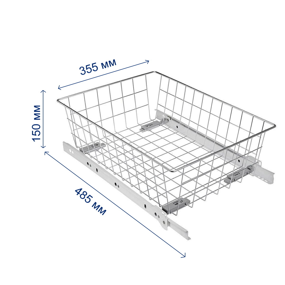 Корзина выдвижная 40III (355х485х150), в модуль 400 мм, на роликовых направляющих, белая