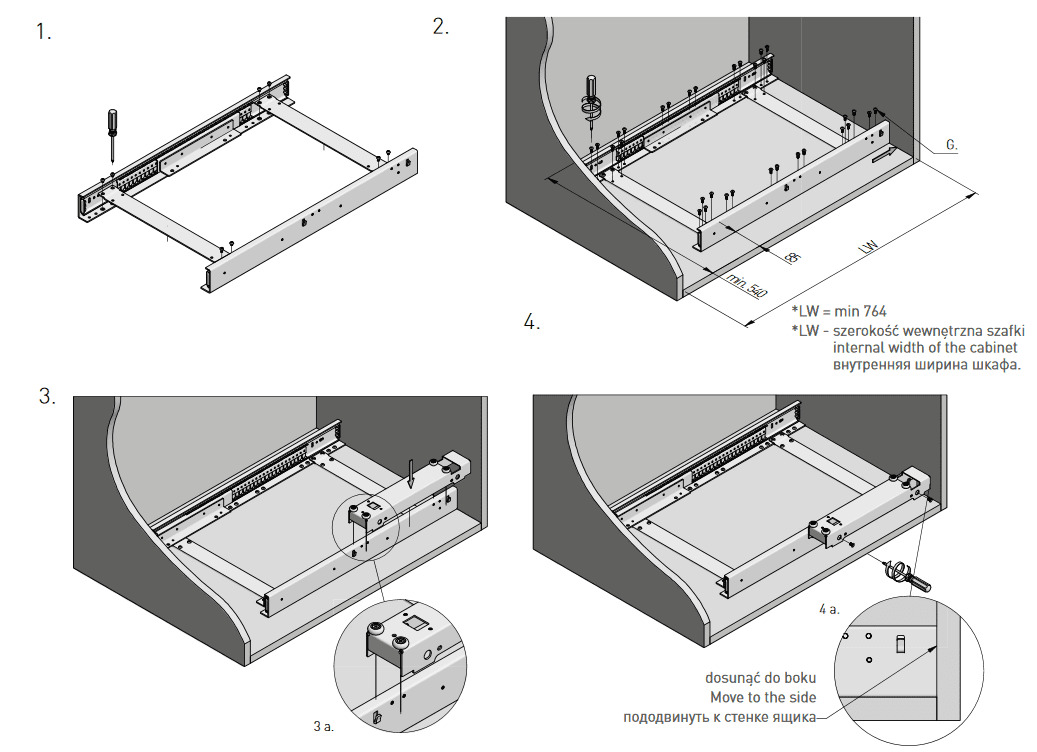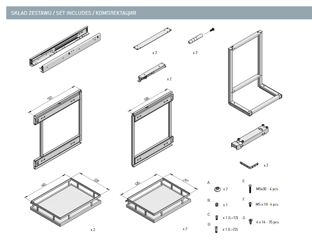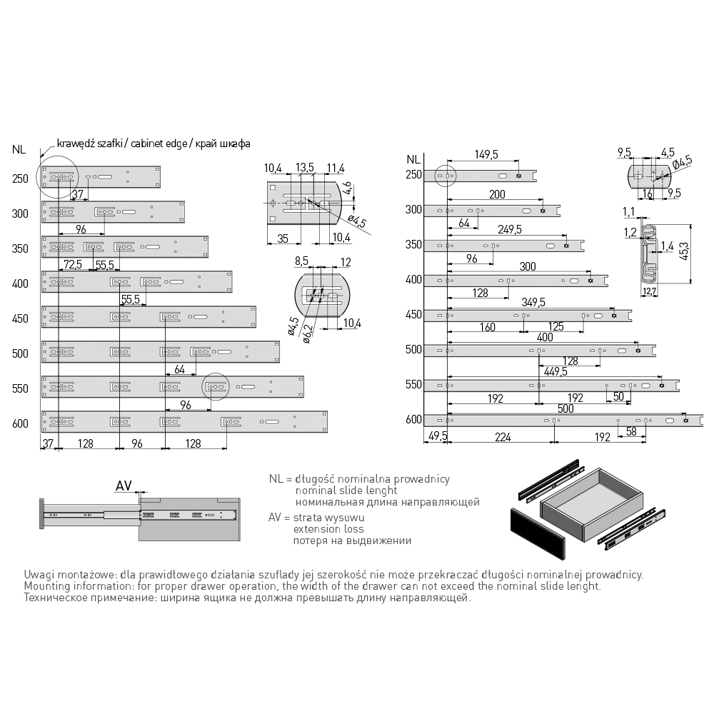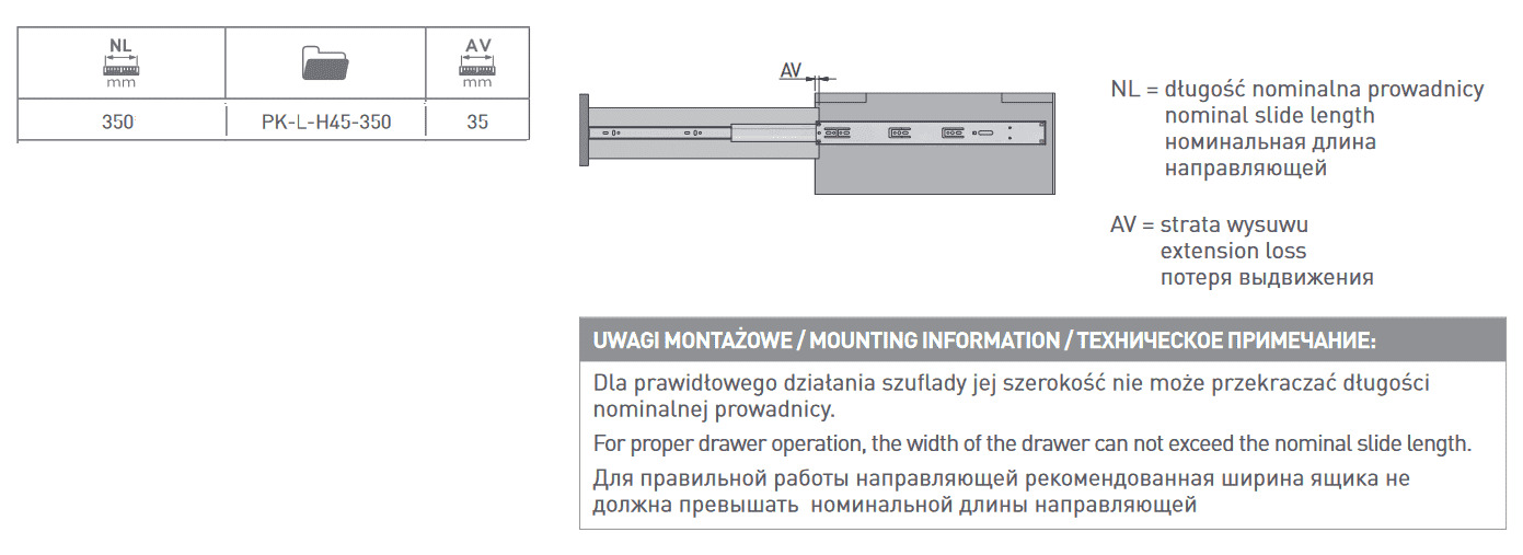 Направляющие шариковые, GTV Versalite PLUS, PK-L-H45-350 с ДОВОДЧИКОМ неполного выдвижения