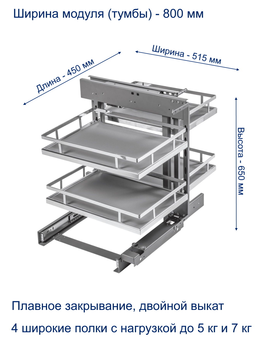 Корзина для белья ротанг WG-KOSZR80-10 белая, с доводчиком, полного выдвижения, в модуль 800 мм