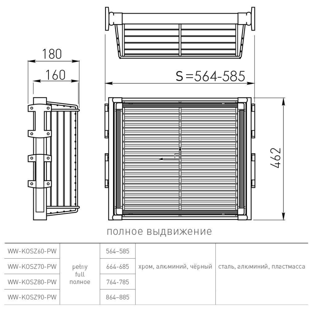 Корзина для белья 564x460x180 WW-KOSZ60-PW полного выдвижения, в модуль 600 мм