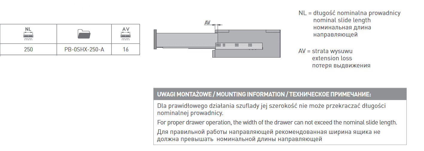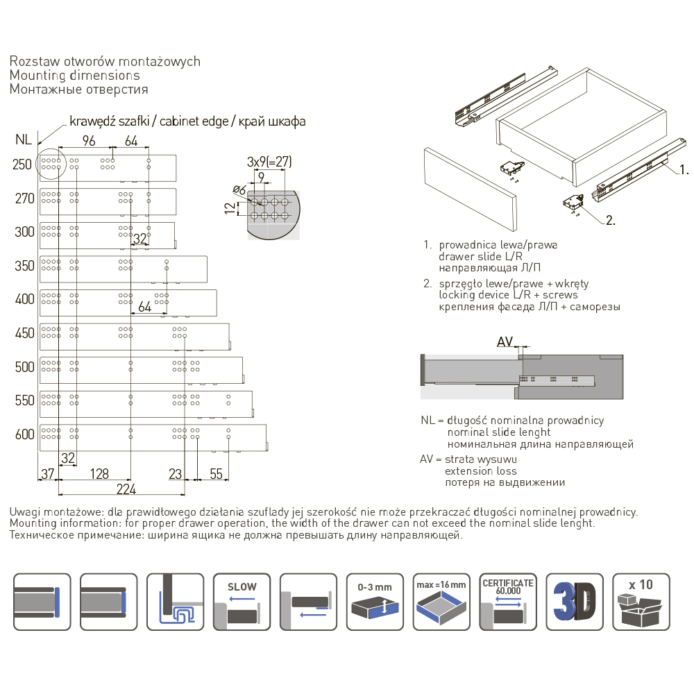 Направляющие MODERN SLIDE L-250 полного выдвижения для деревянных ящиков с доводчиком
