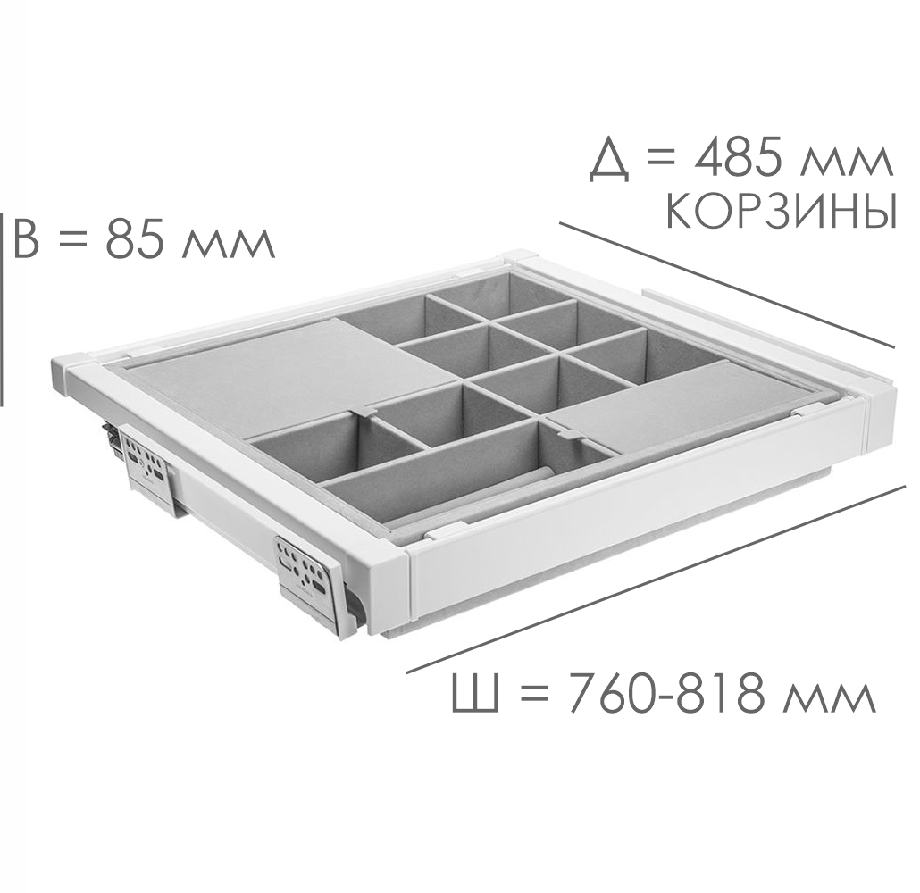 Корзина выдвижная 60II (555х485х100), в модуль 600 мм, белая, без направляющих