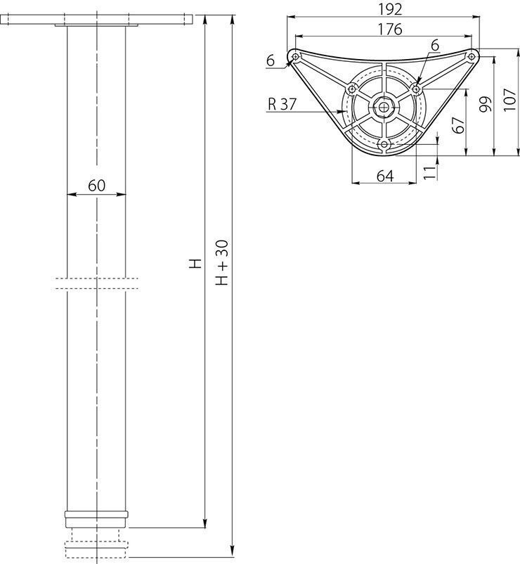 Опора мебельная GTV Innovo 60х820 мм, с верхним креплением, хром
