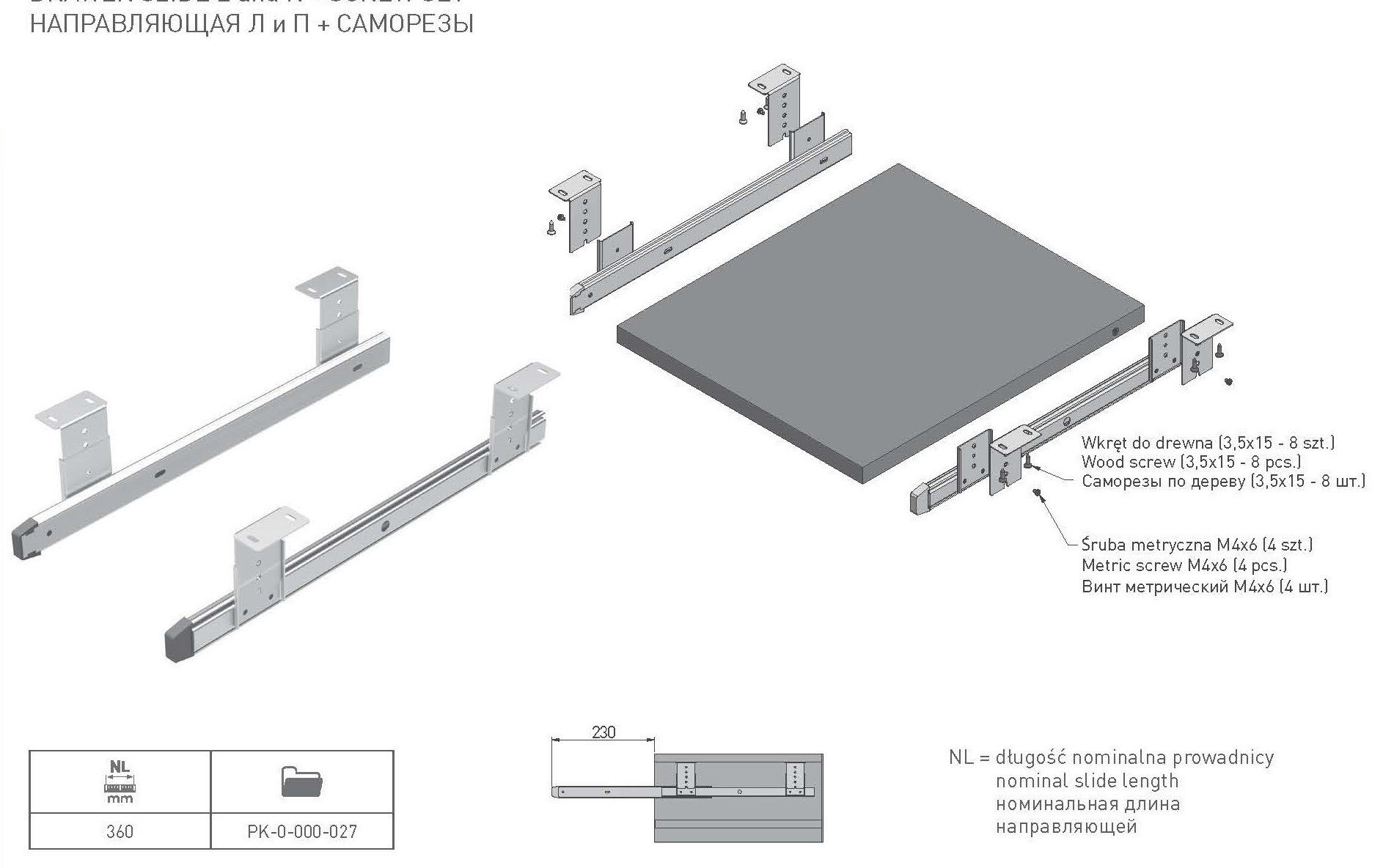 Шариковые направляющие для полки под клавиатуру H27 GTV 360 мм (комплект для 1 полки)