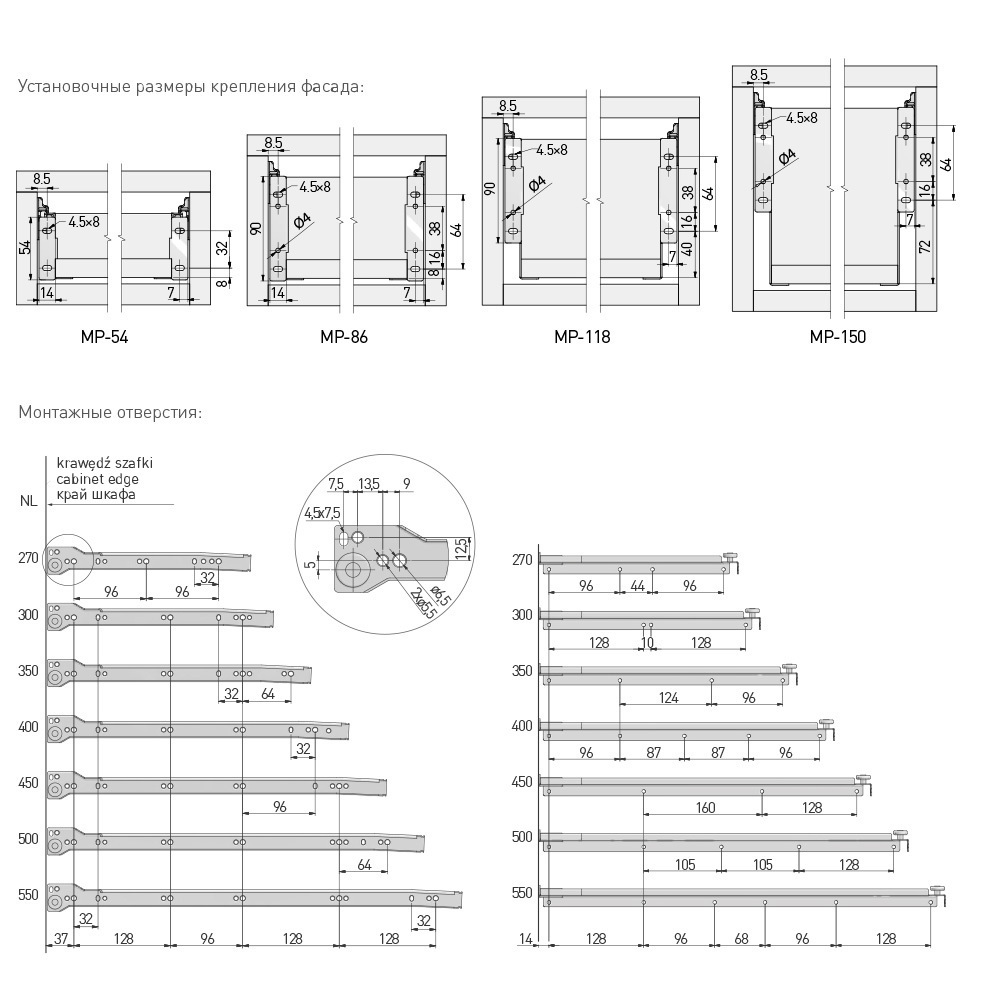 Направляющие шариковые PK-P-0H45-550 с выталкивателем