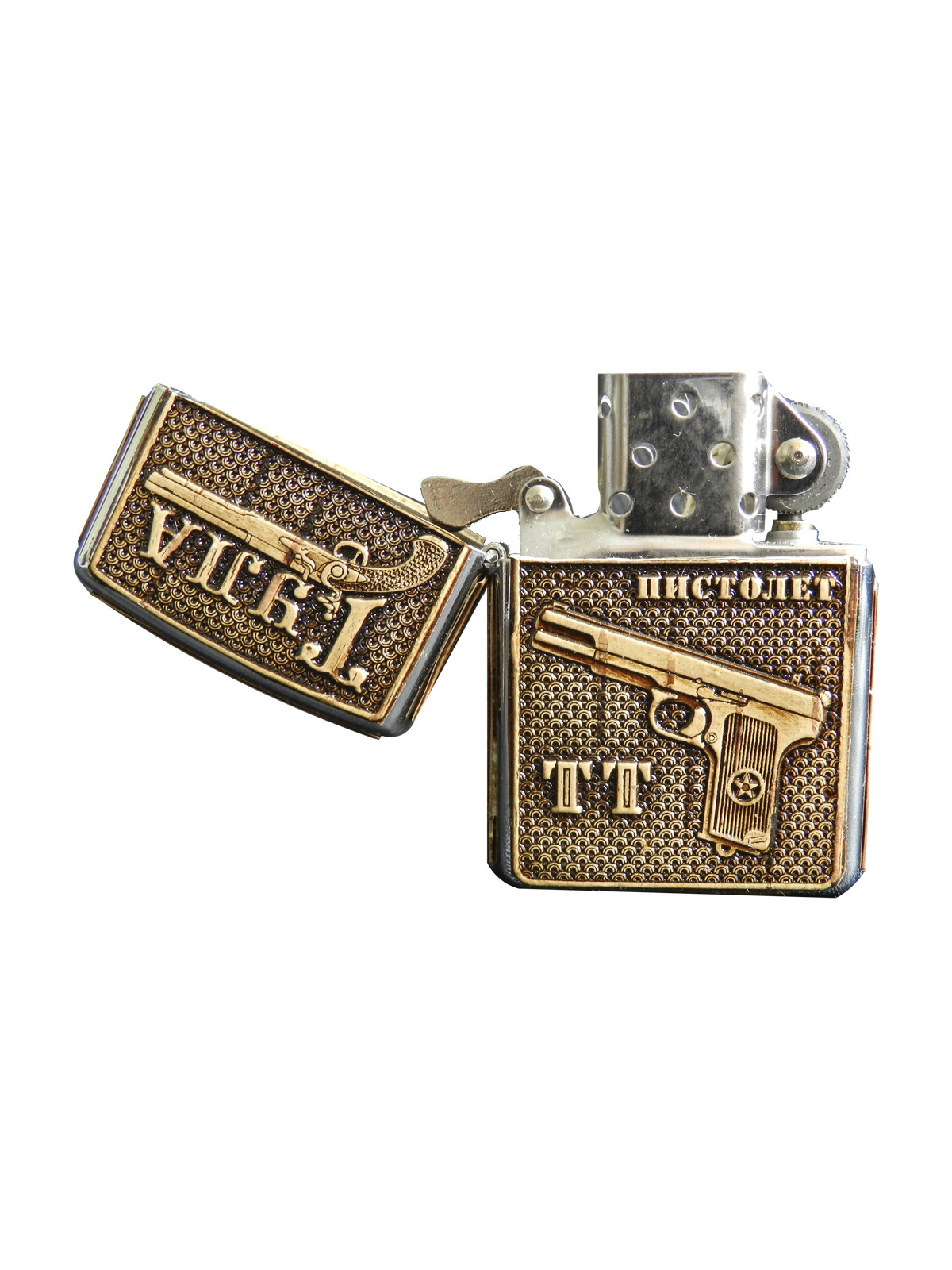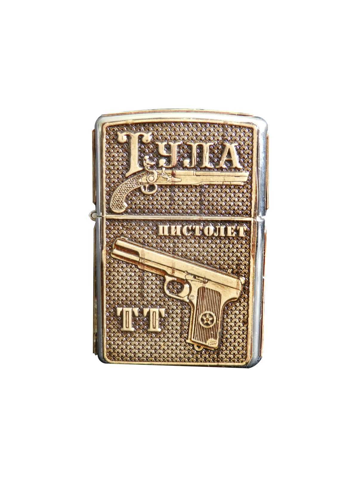 Зажигалка бензиновая обтянутая берестой ПИСТОЛЕТ