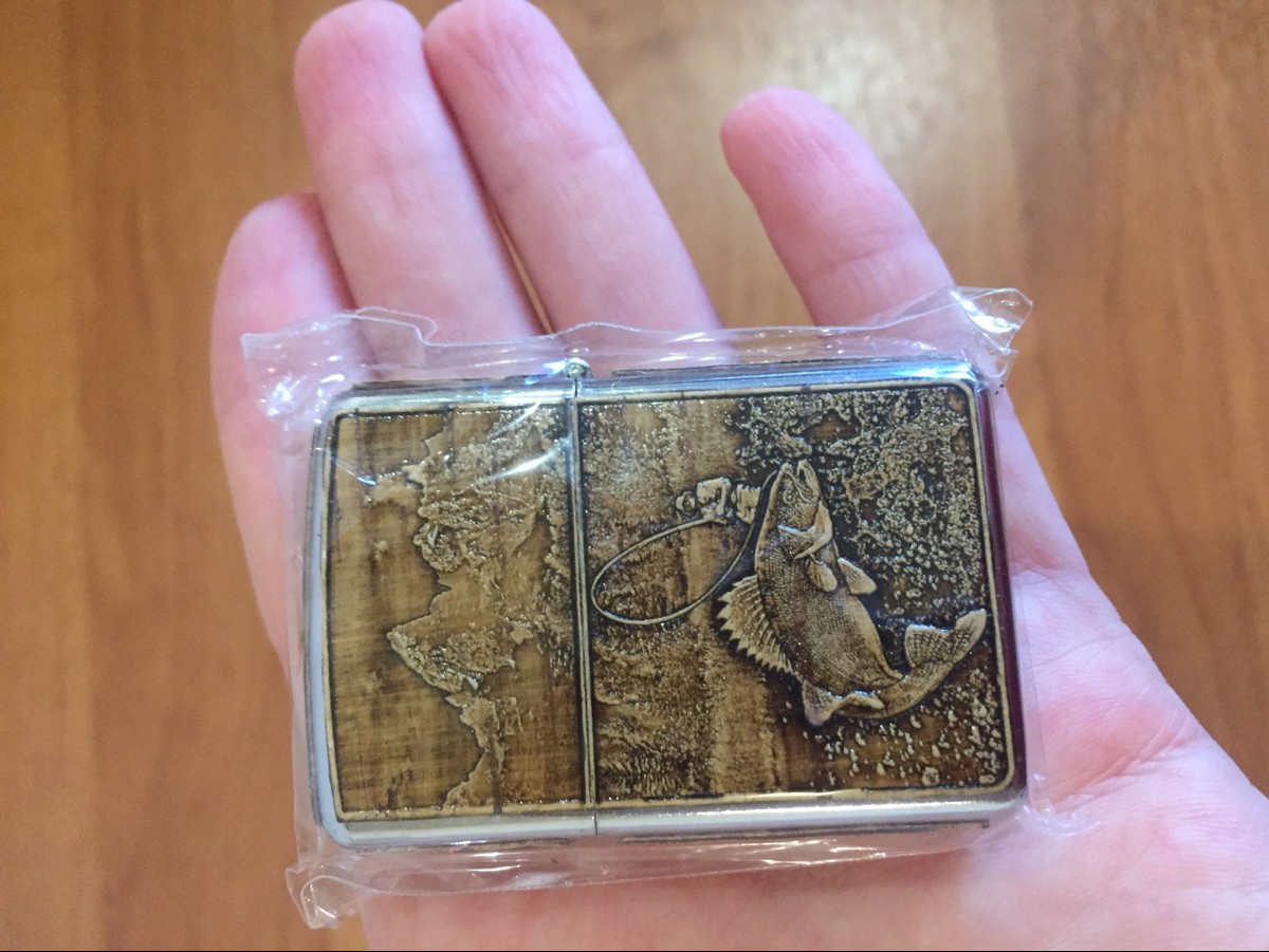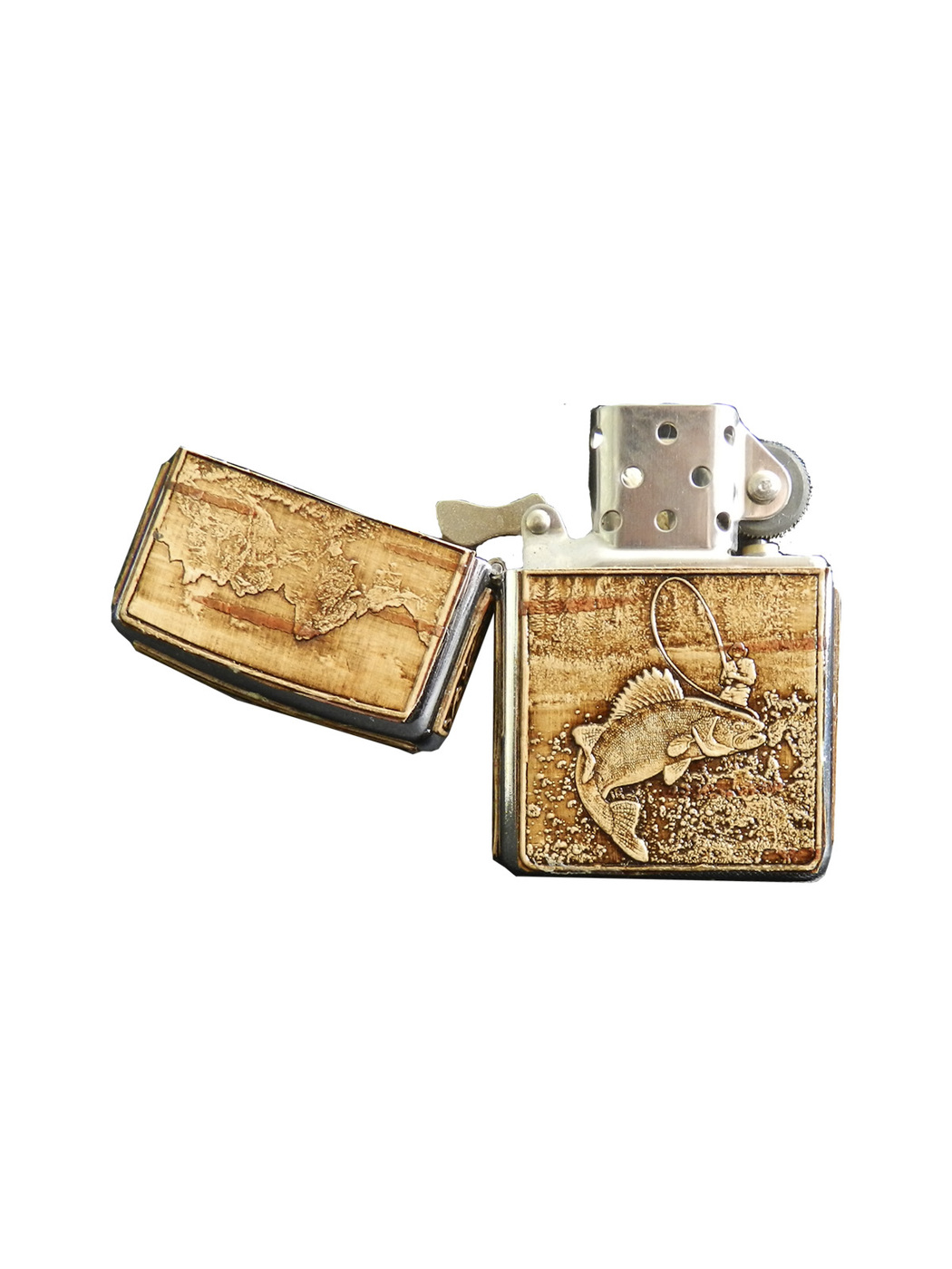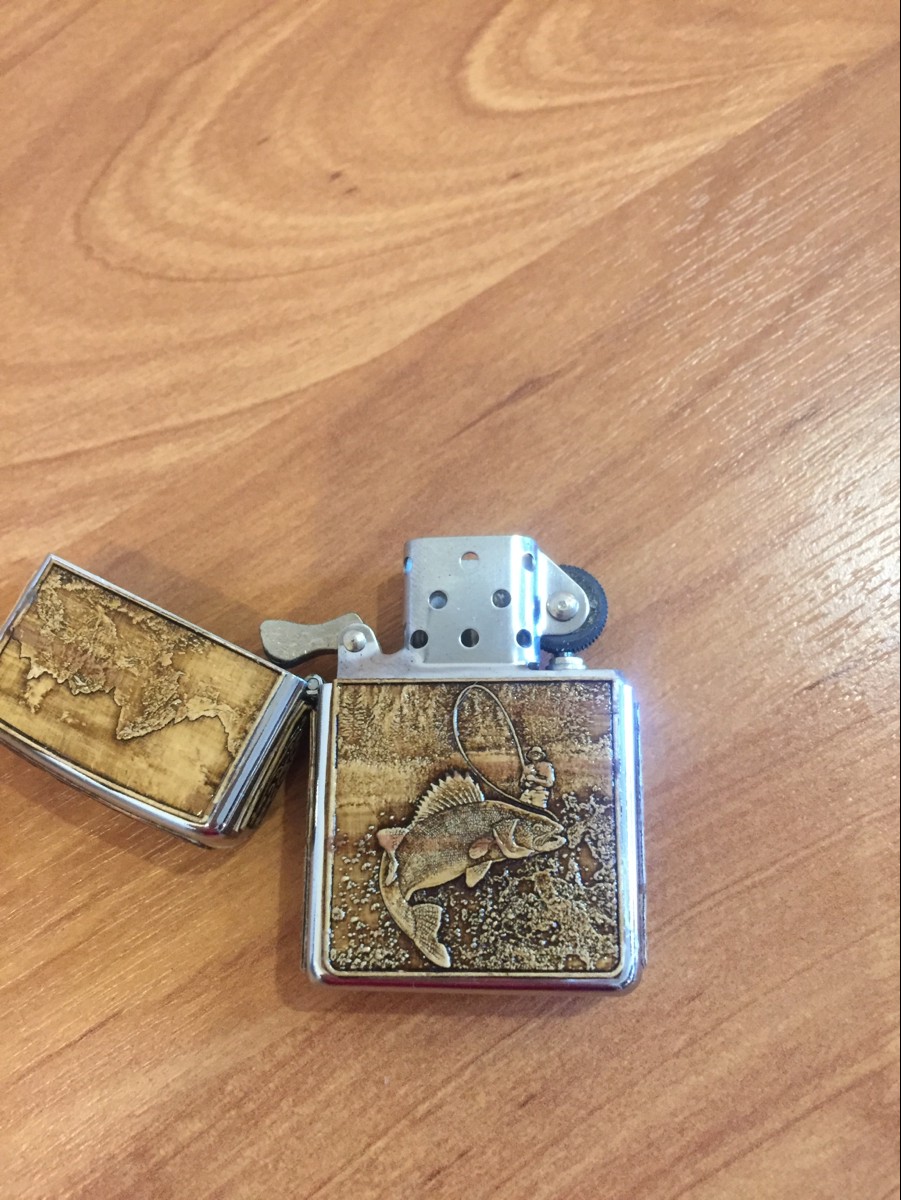 Зажигалка бензиновая обтянутая берестой РЫБАЛКА