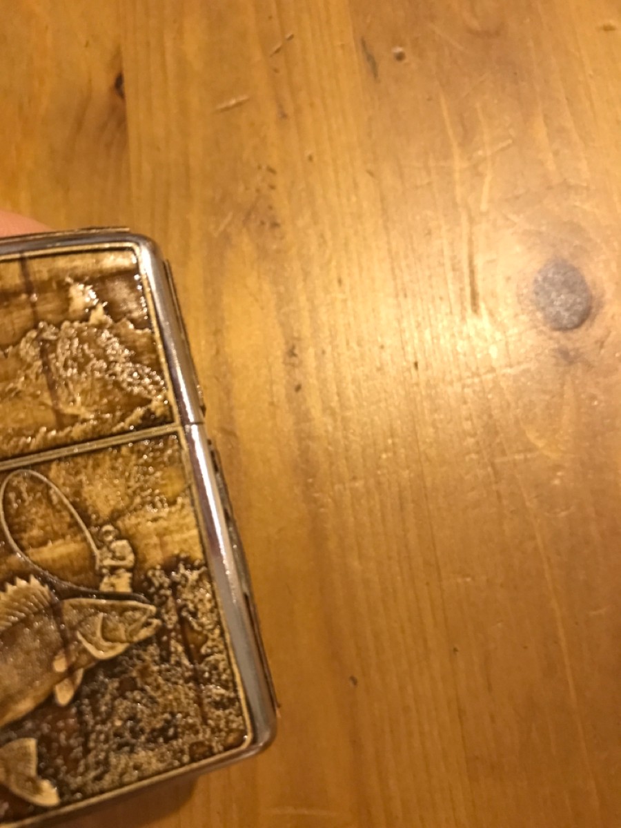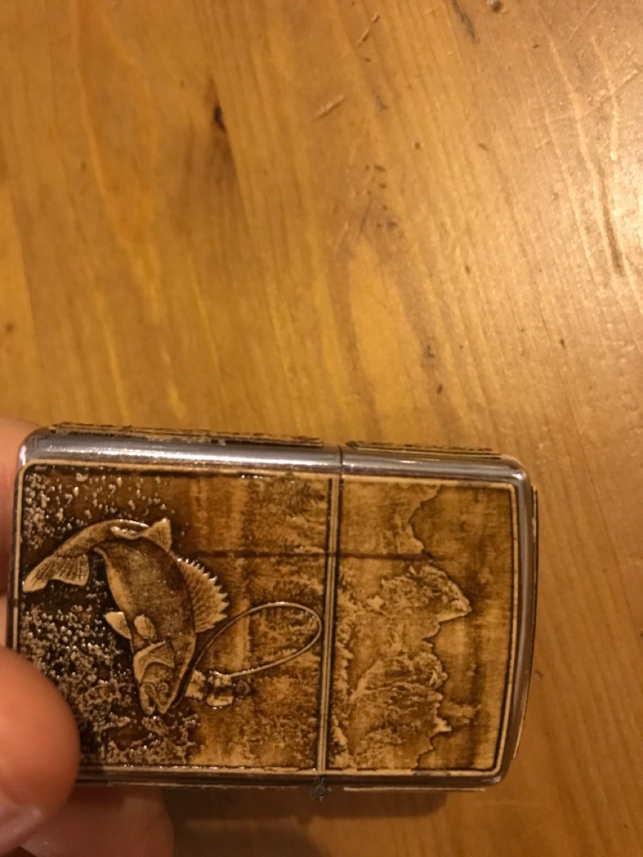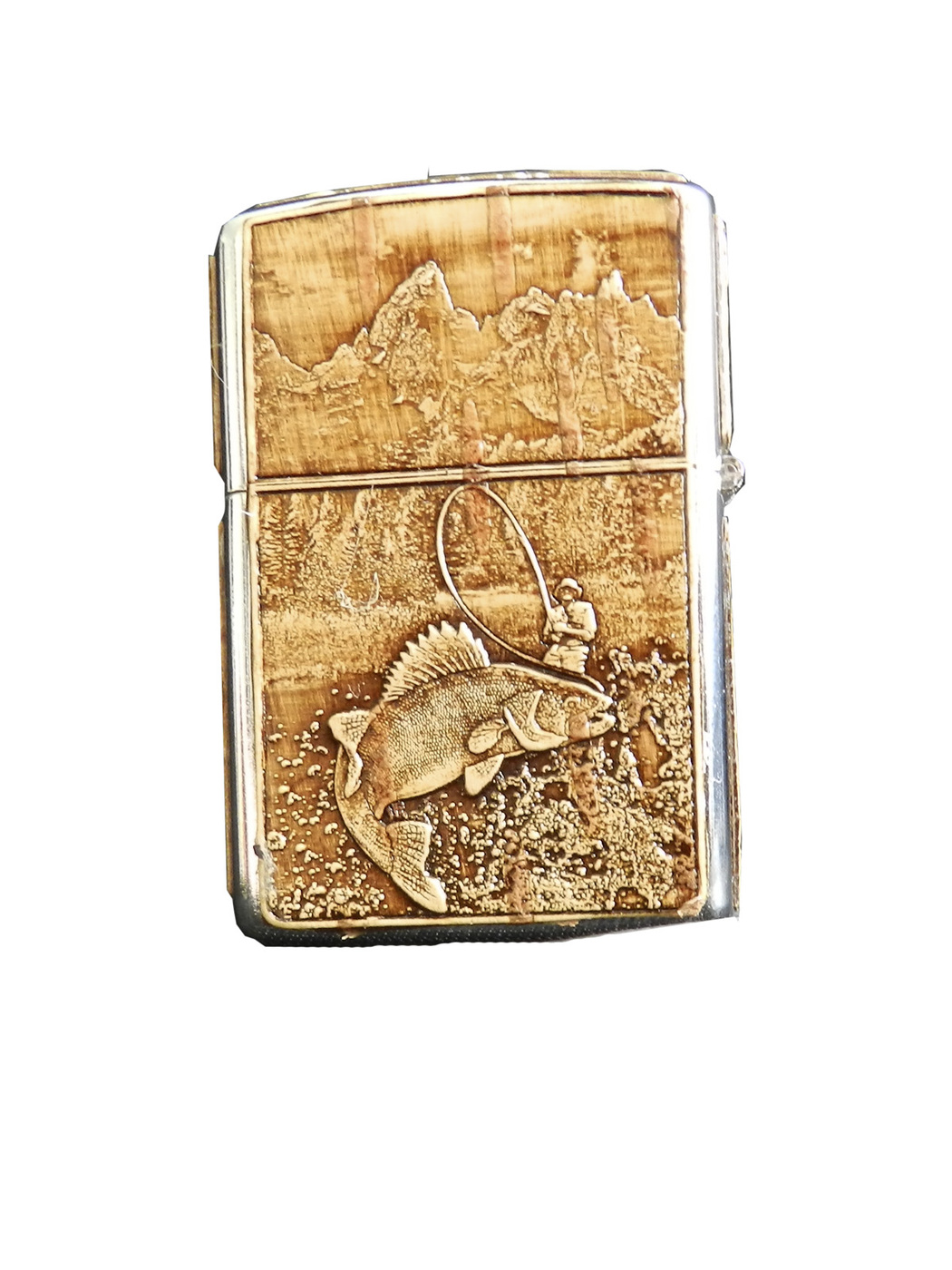 Зажигалка бензиновая обтянутая берестой РЫБАЛКА