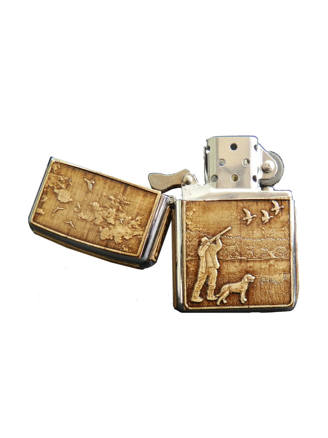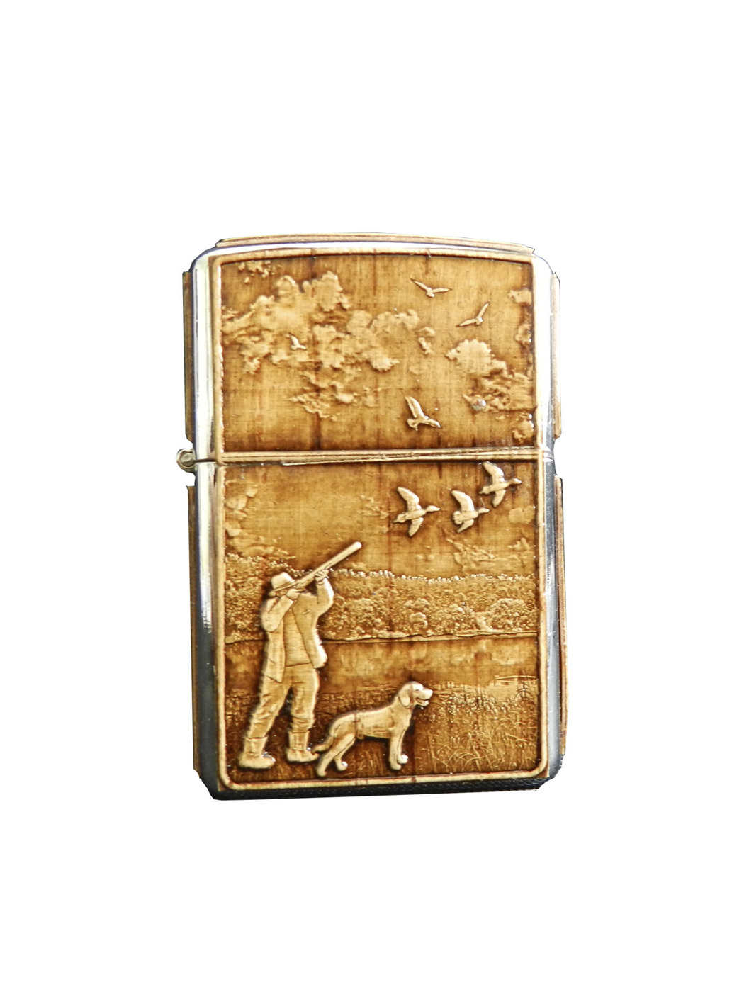 Зажигалка бензиновая обтянутая берестой ОХОТА