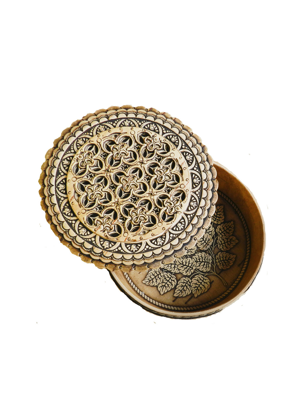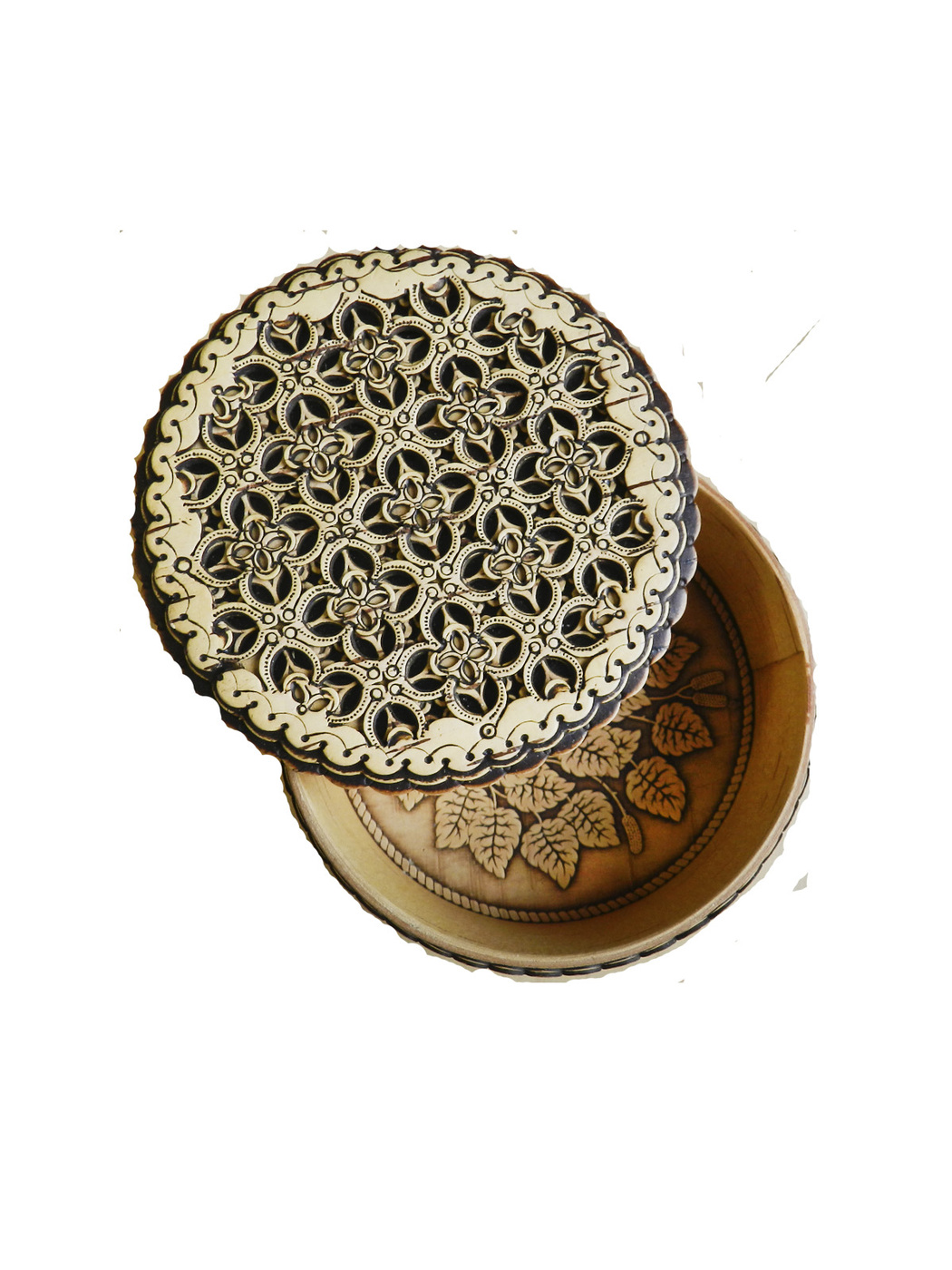 Шкатулка авторская резная береста геометрия КРУГ