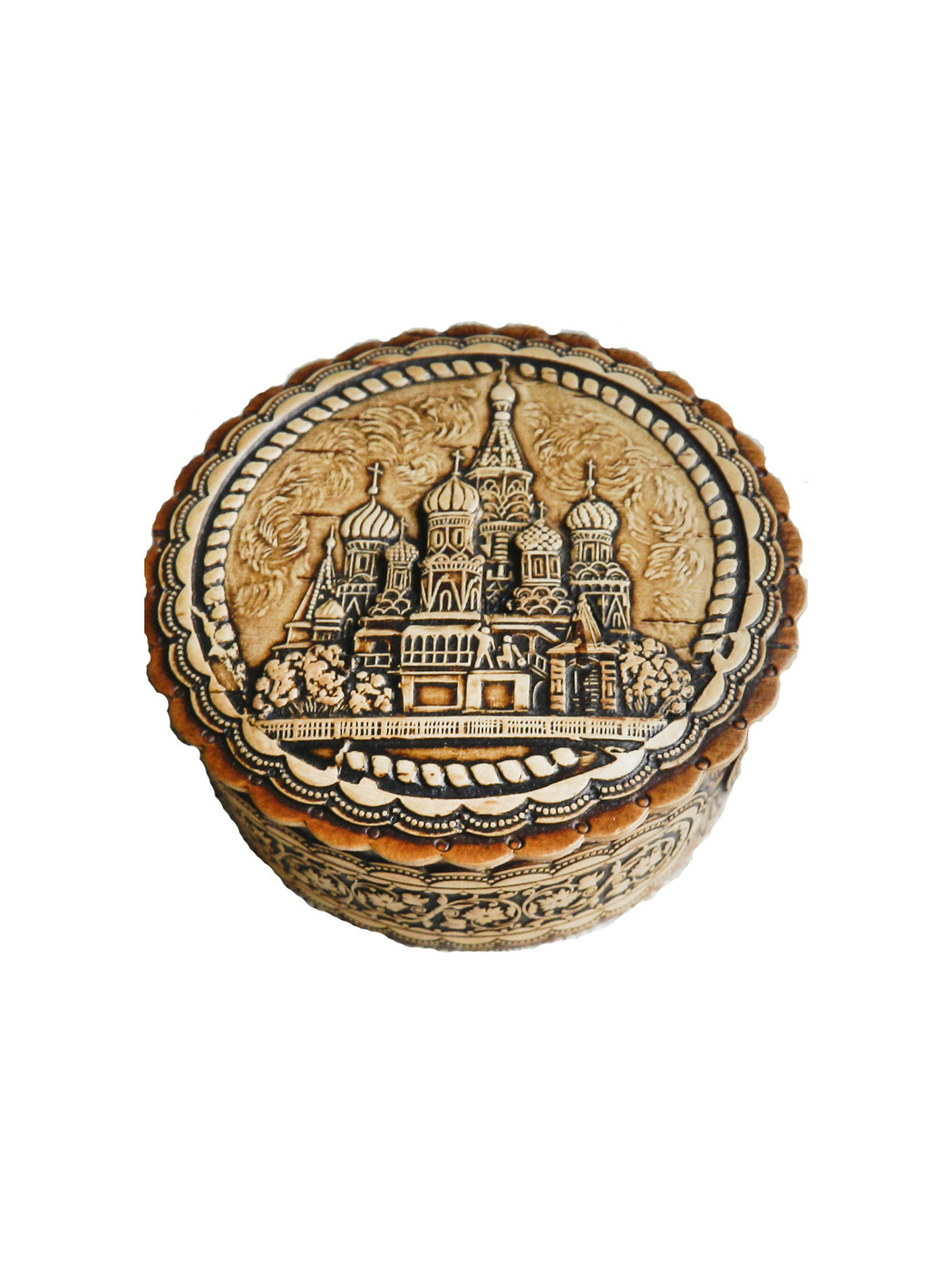 Шкатулка авторская тиснение береста Храм Василия Блаженного #1