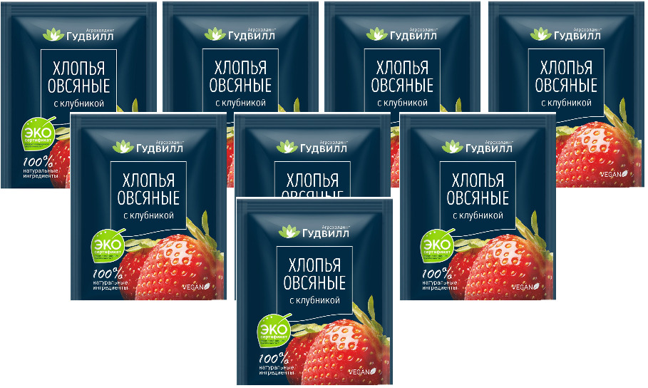 Гудвилл Хлопья Овсяные крупяные с клубникой не треб/варки 40гр, 8 шт