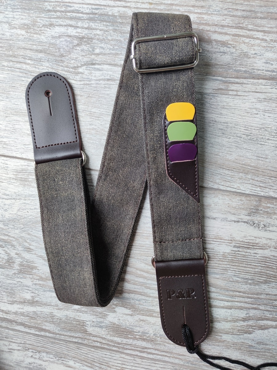 Ремень для гитары с карманом для медиаторов, черный