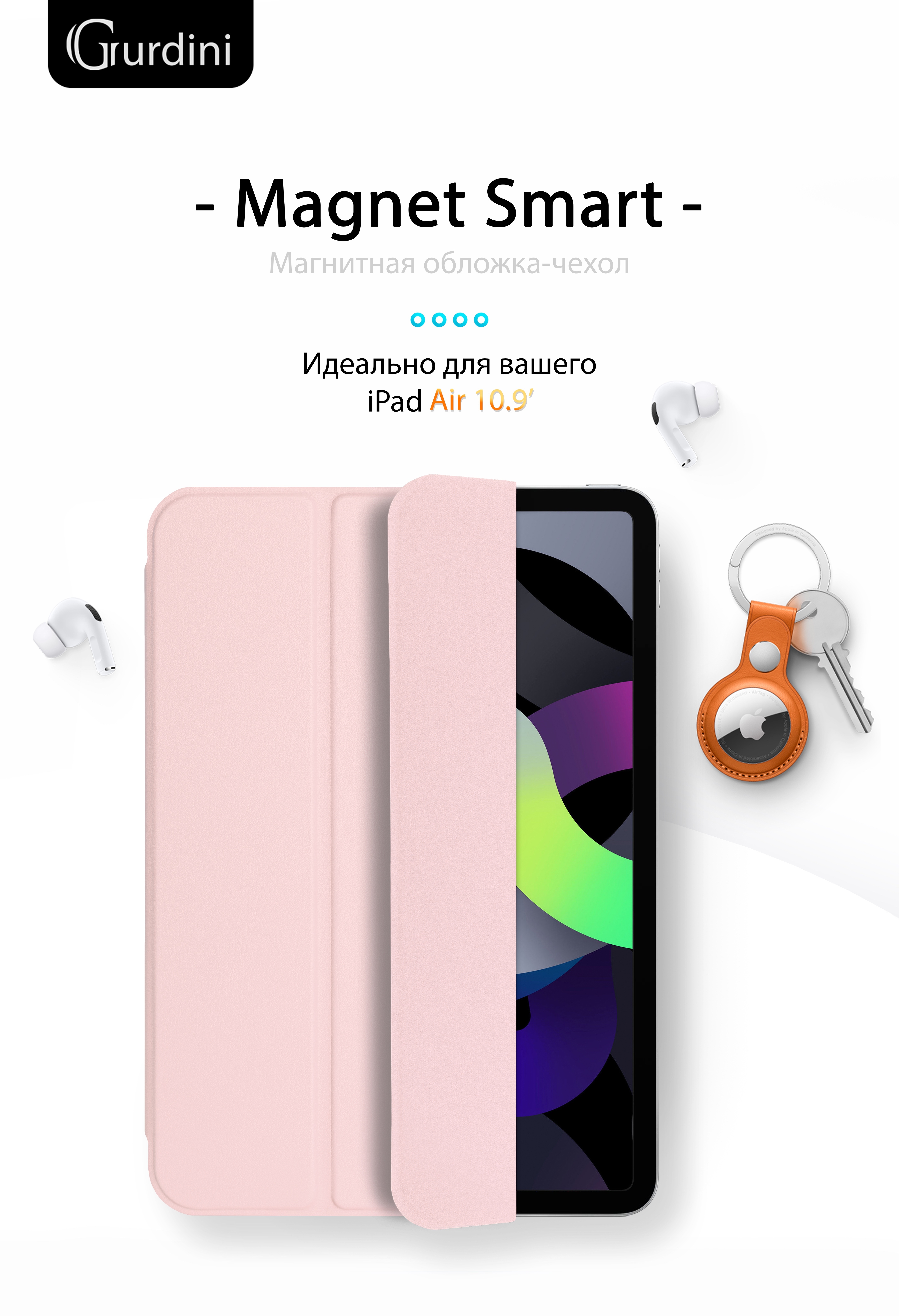 Чехол книжка Gurdini Magnet Smart для Apple iPad Air 10.9" New 2020,913641,розовый