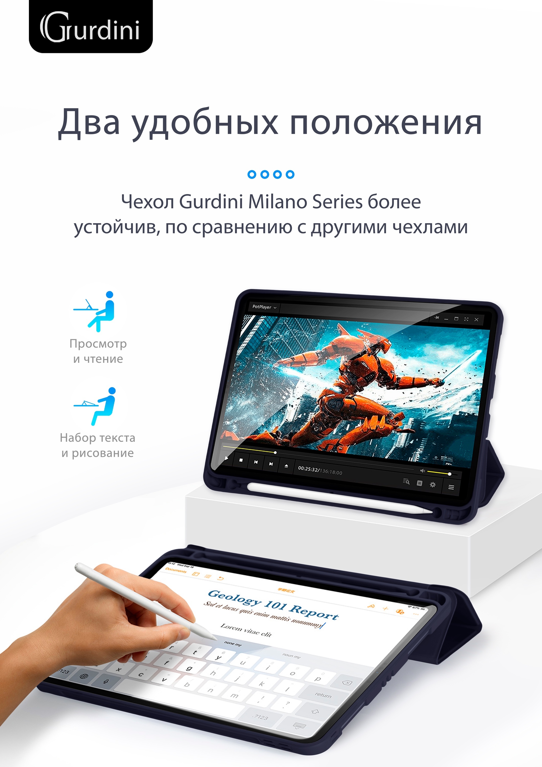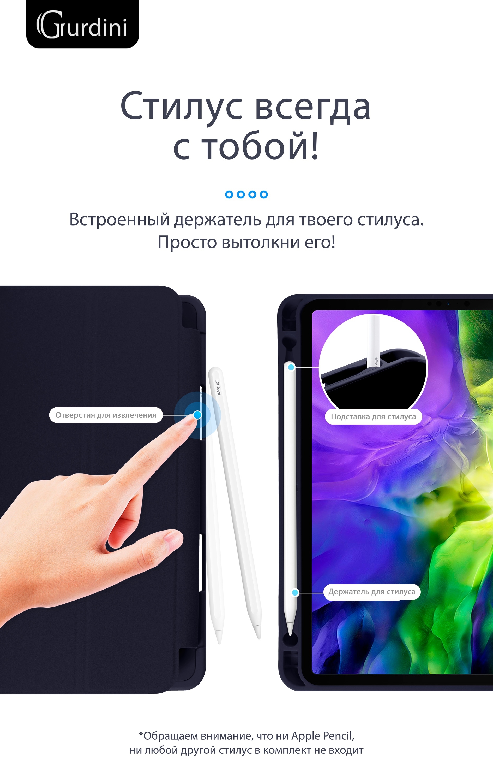 Чехол книжка Gurdini Milano Series (pen slot) для Apple Ipad Air 2020 10.9",914280, темно-синий