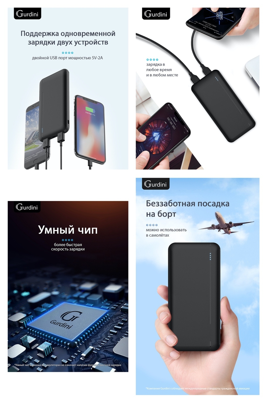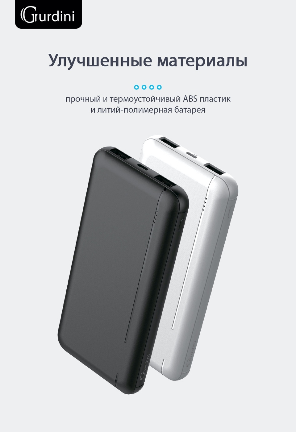 Внешний аккумулятор Gurdini Business Series 10000mAh GPBS-01B 2 USB,черный