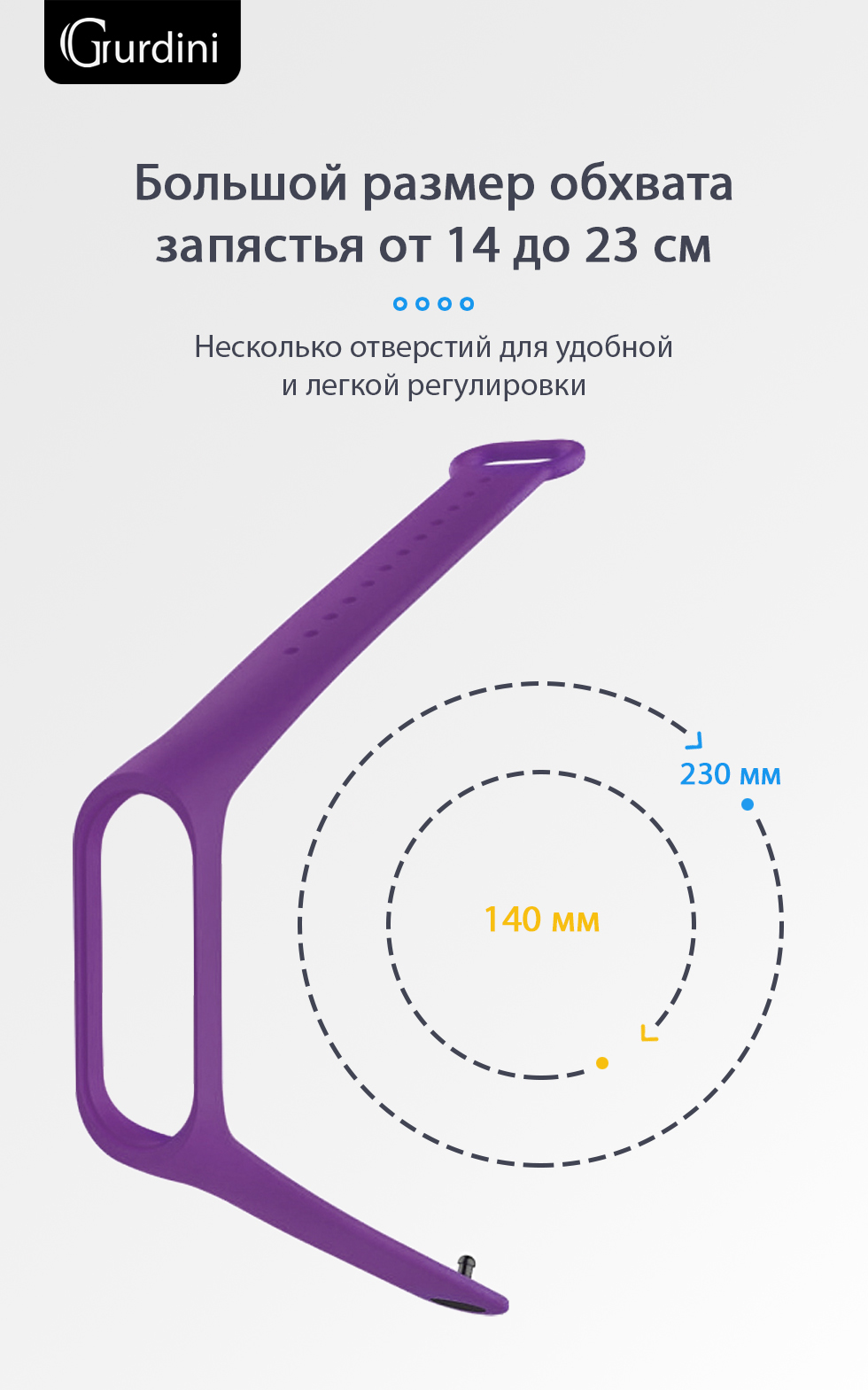 Ремешок Gurdini силиконовый для фитнес браслета Xiaomi Mi Band 3/Mi Band 4,908144, фиолетовый