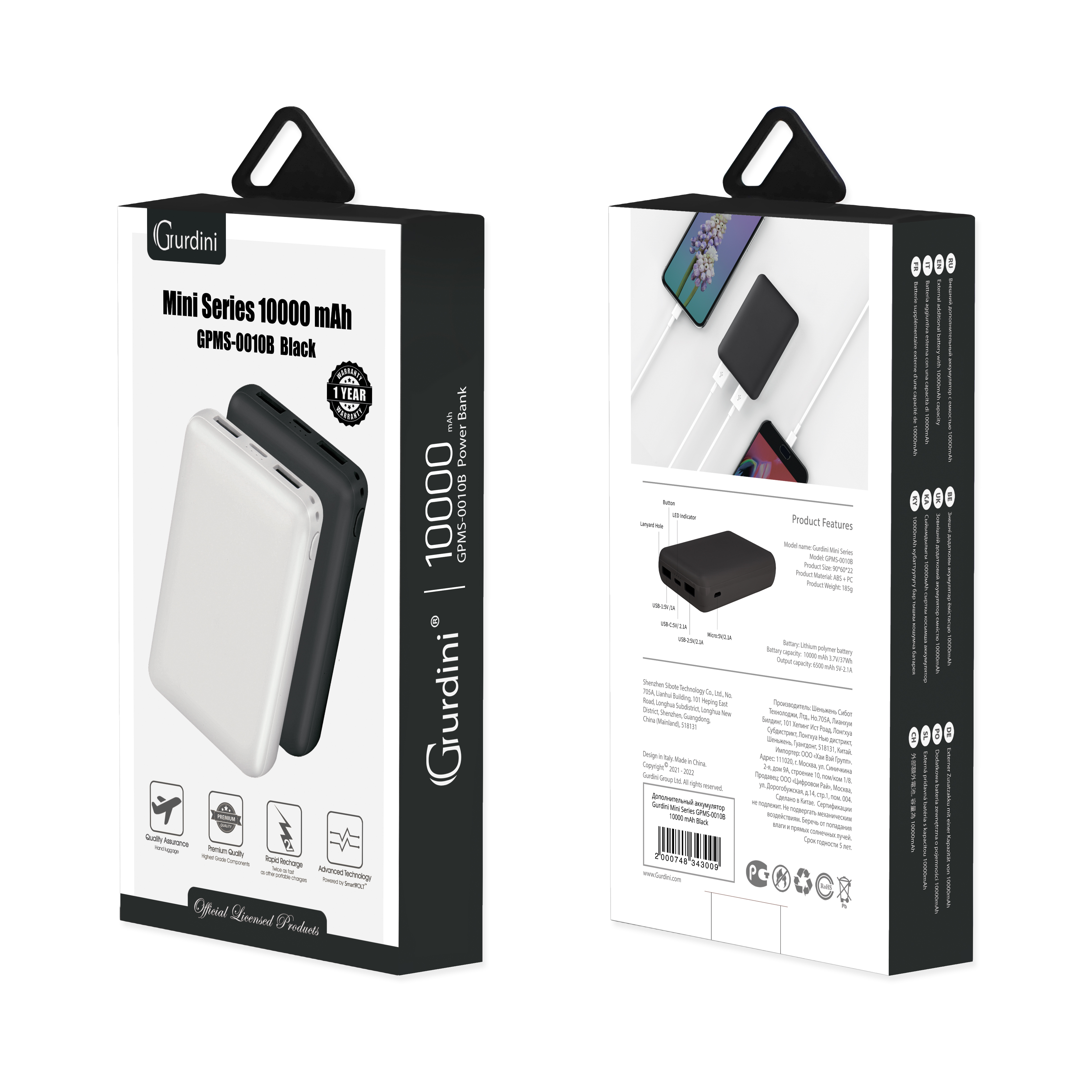 Внешний аккумулятор Gurdini Mini Series GPMS-0010B 10000 mAh ,913449,черный
