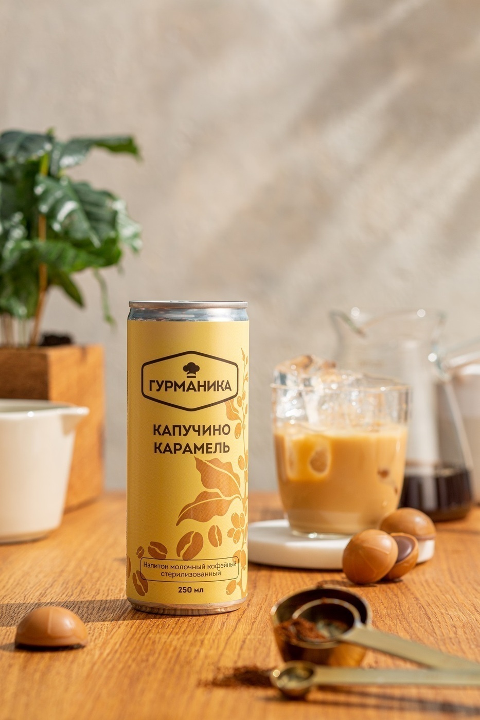 Гурманика, Кофейный напиток Капучино-карамель в банке 250мл арабика 100%