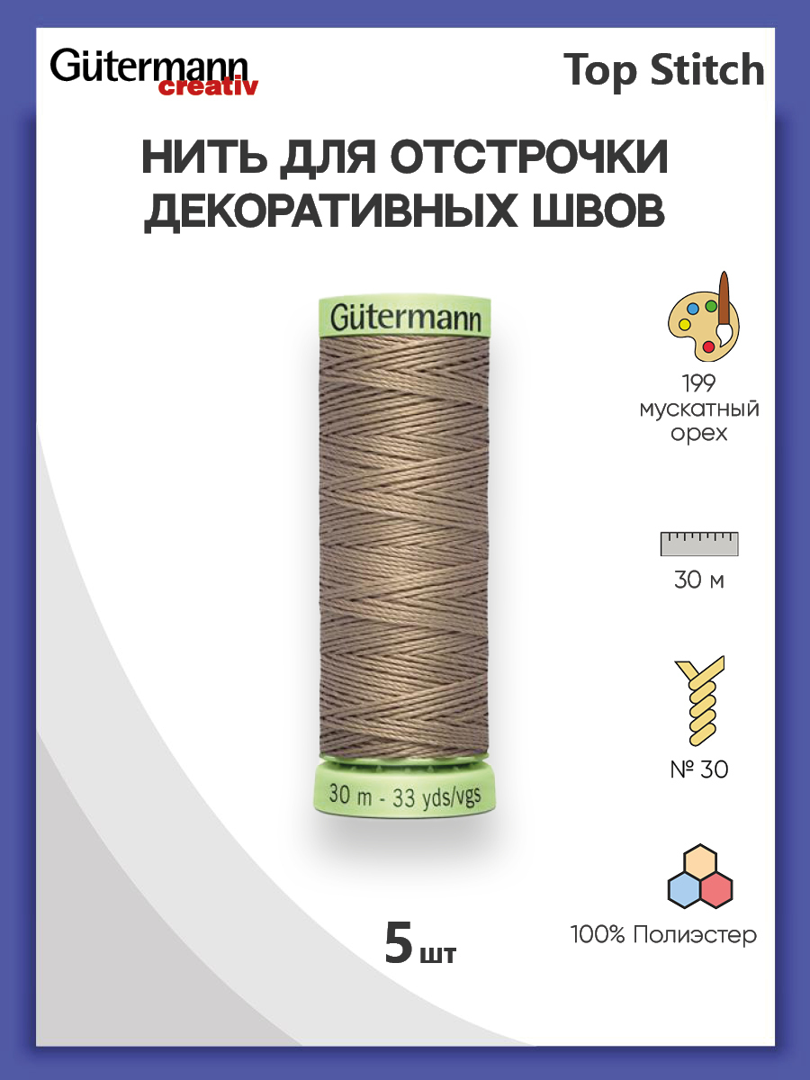 Нить Топ Стич (Top Stitch) 100% п/э 30м, Gutermann