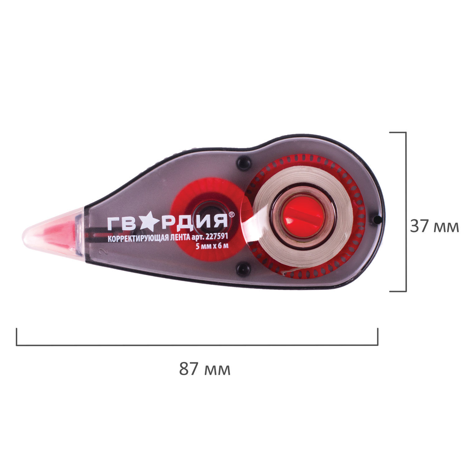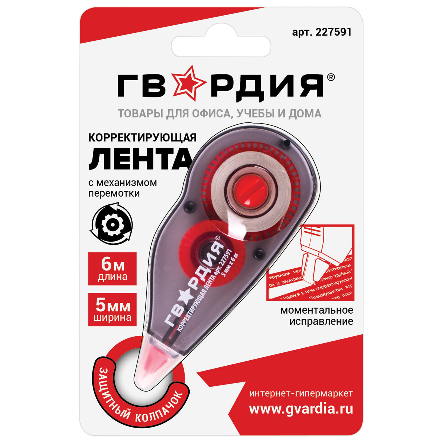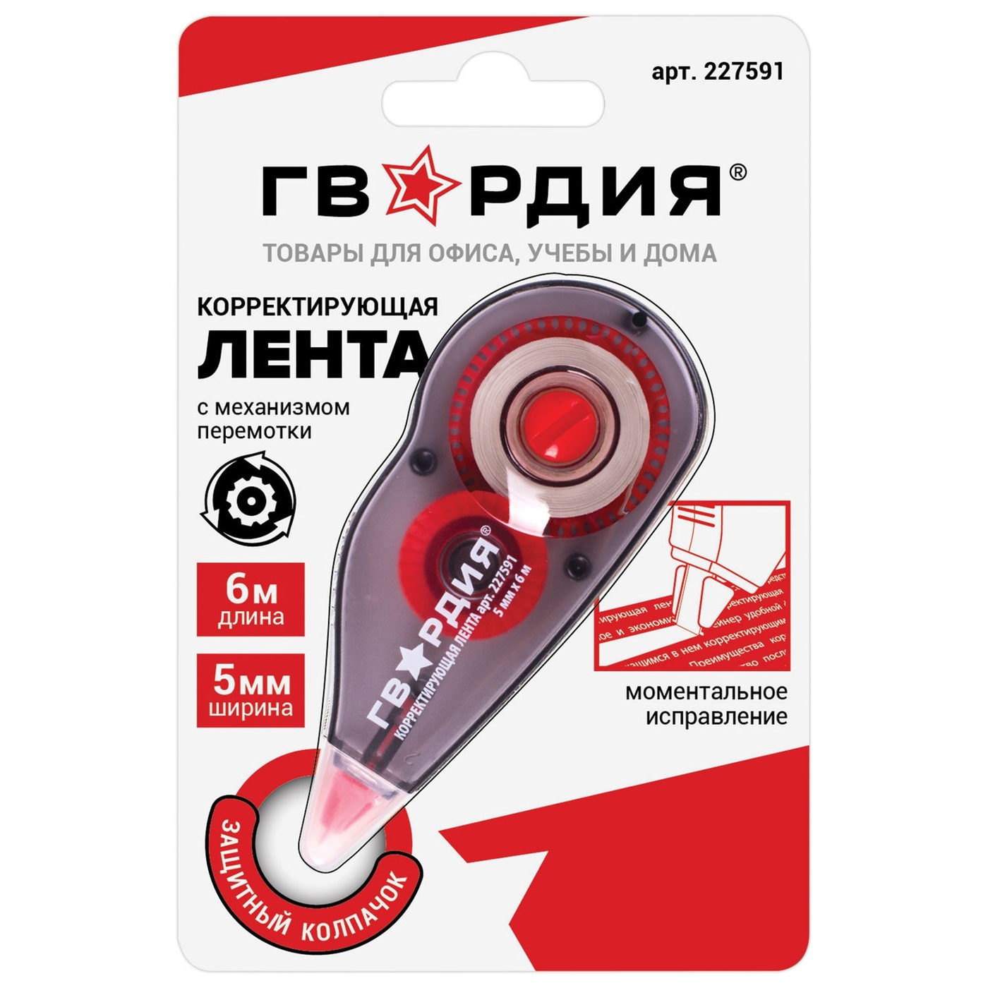Корректирующая лента ГВАРДИЯ 5 мм х 6 м, корпус прозрачный, с подкручиванием, блистер