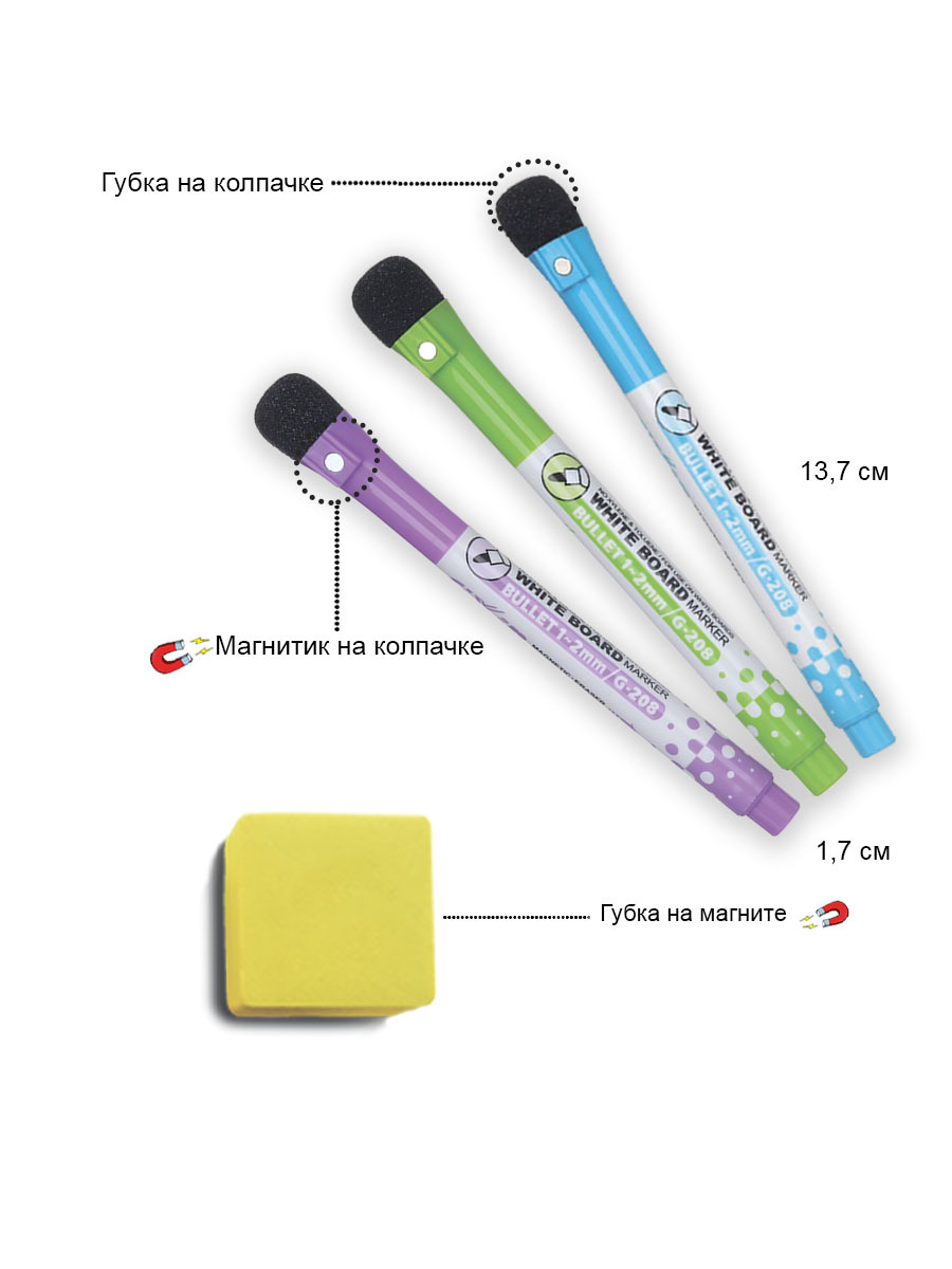 Тонкий маркер для магнитного планера или маркерной доски (на магнитике, с губкой на колпачке) Чёрный