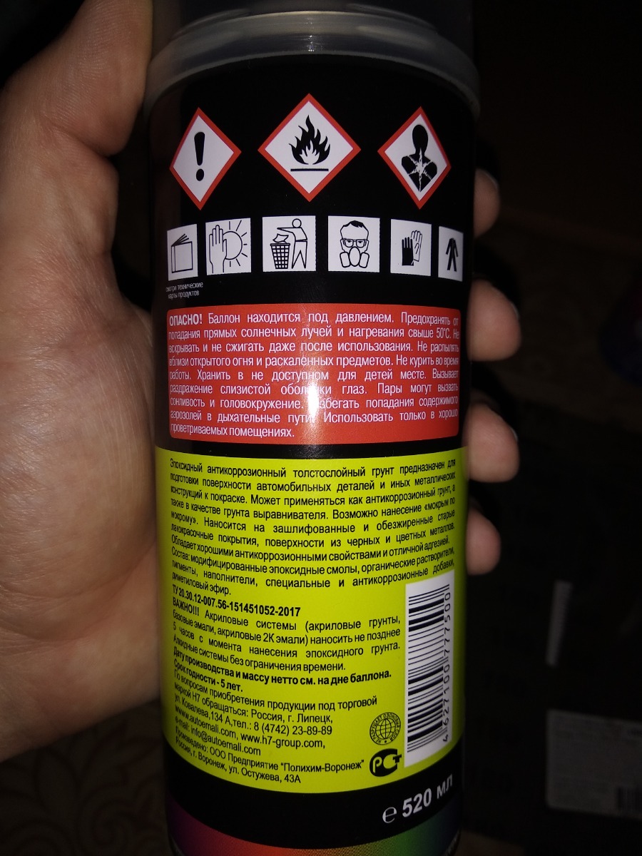 Грунт эпоксидный антикоррозионный наполнитель High Build профессиональный 1К аэрозоль 520мл H7
