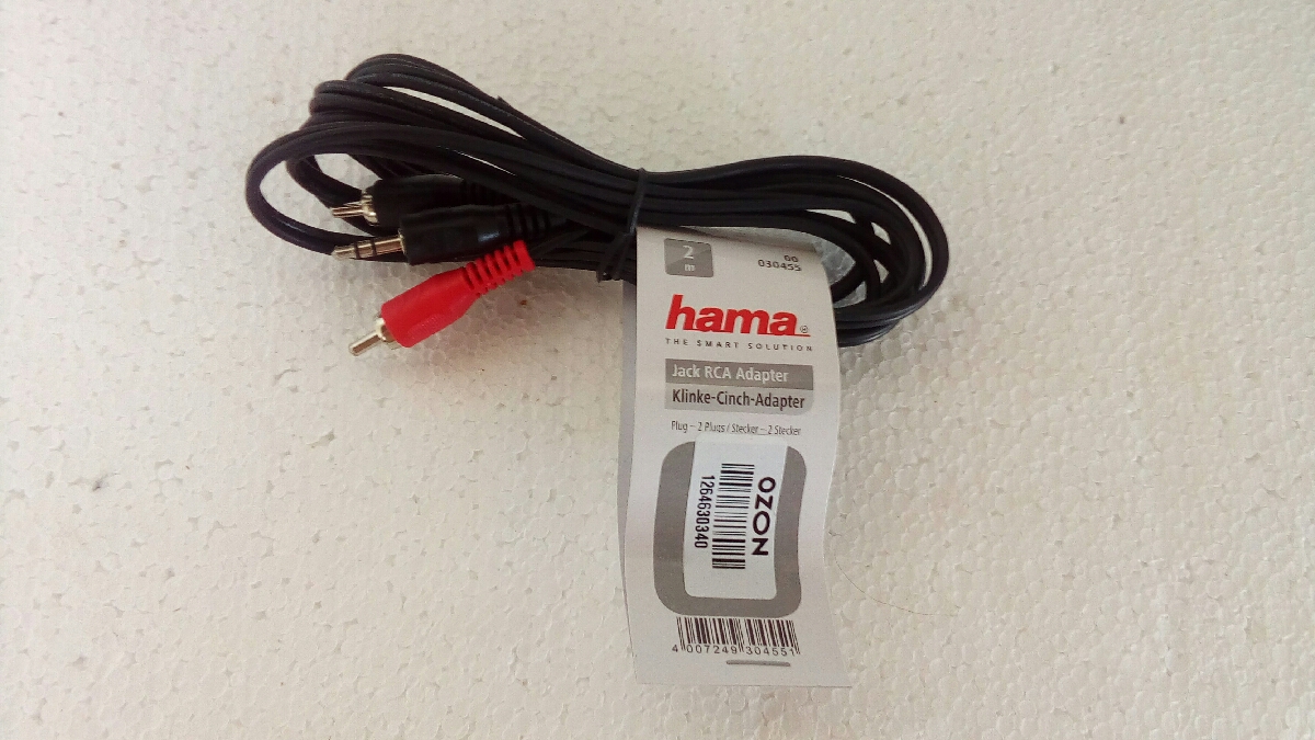 Кабель аудио HAMA, 3.5 мм jack (M) - 2xRCA (M), 2 м, черный