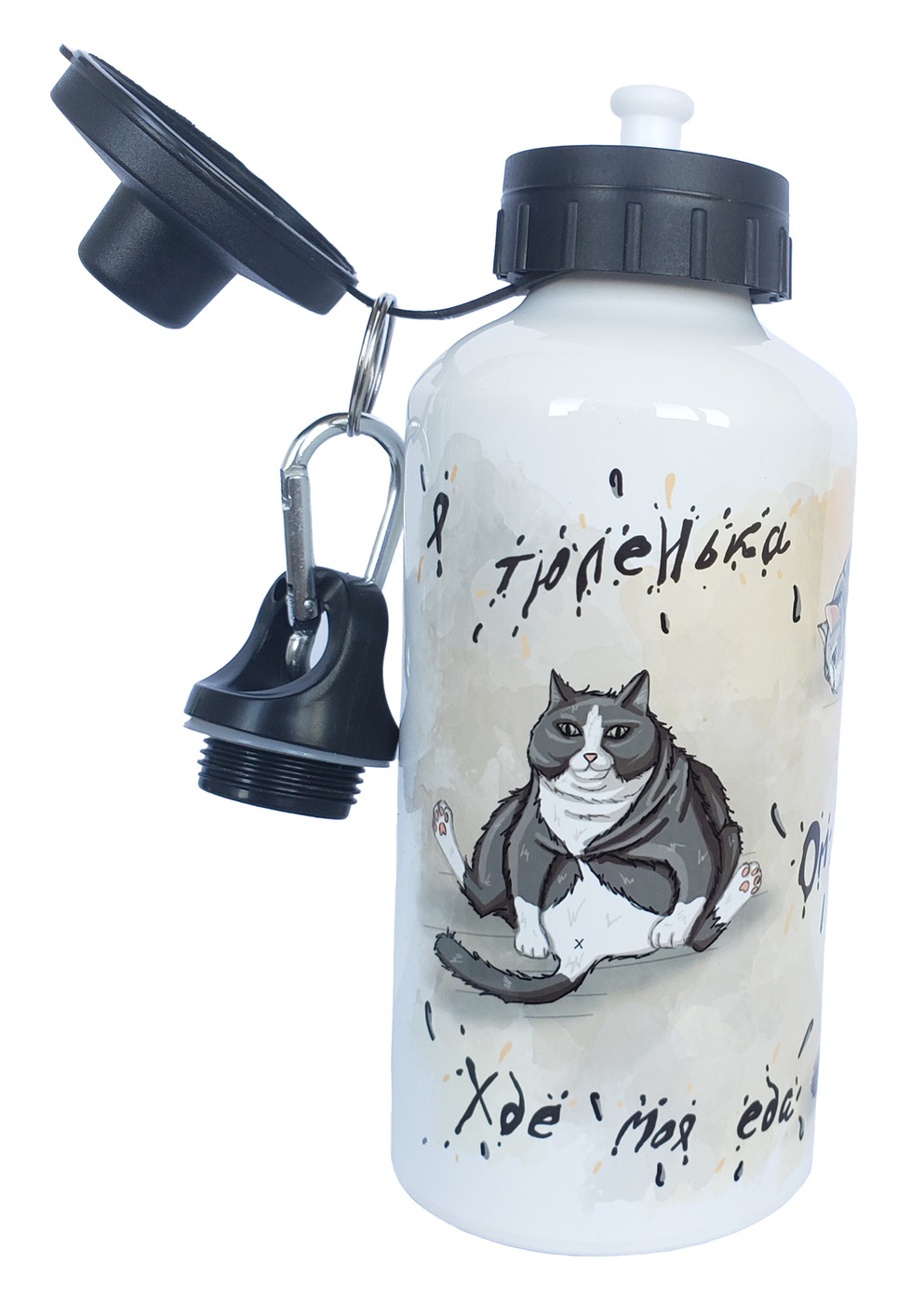 Спортивная бутылка HandArtStudio Толстые котики 500мл, бежевый
