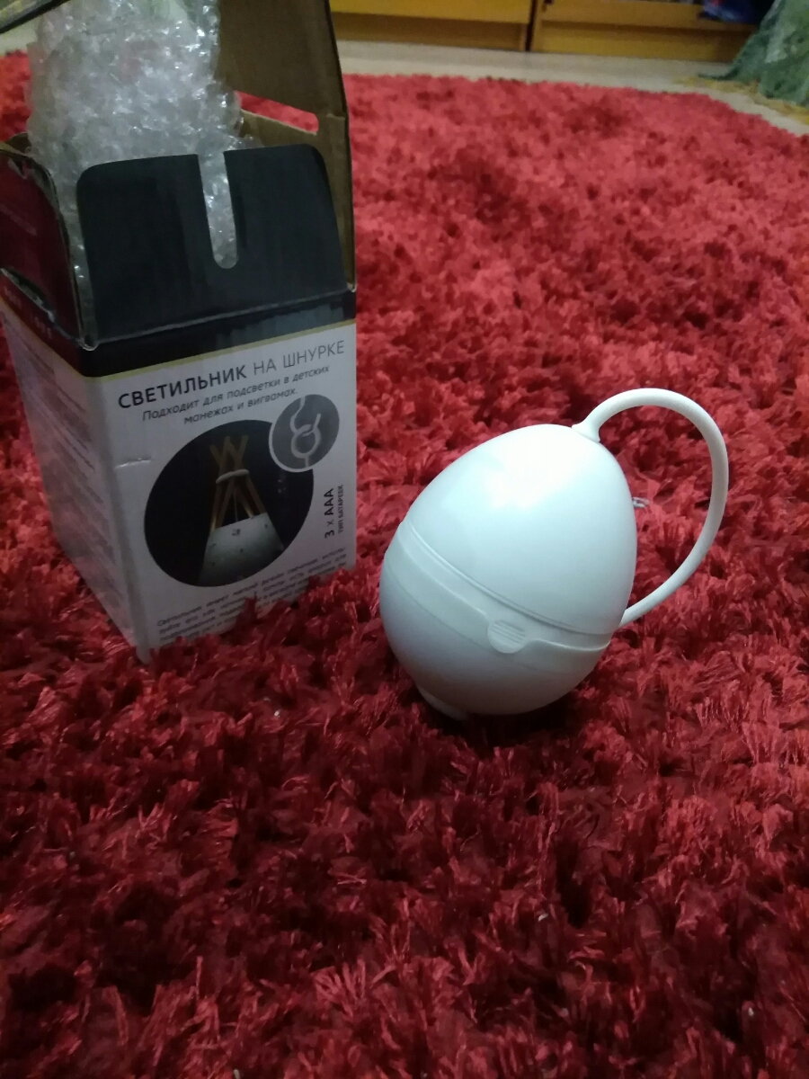 40021, Светильник ночник на шнурке Happy Baby EGG, 3 режима свечения, white