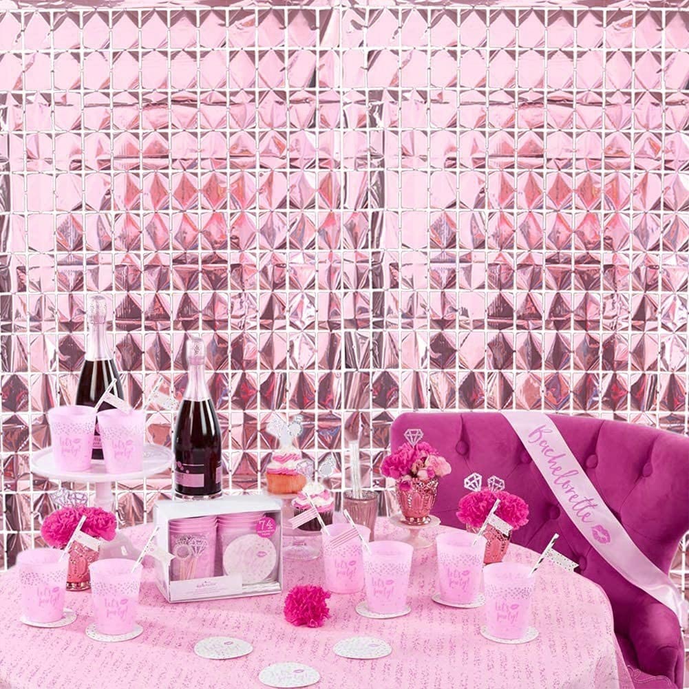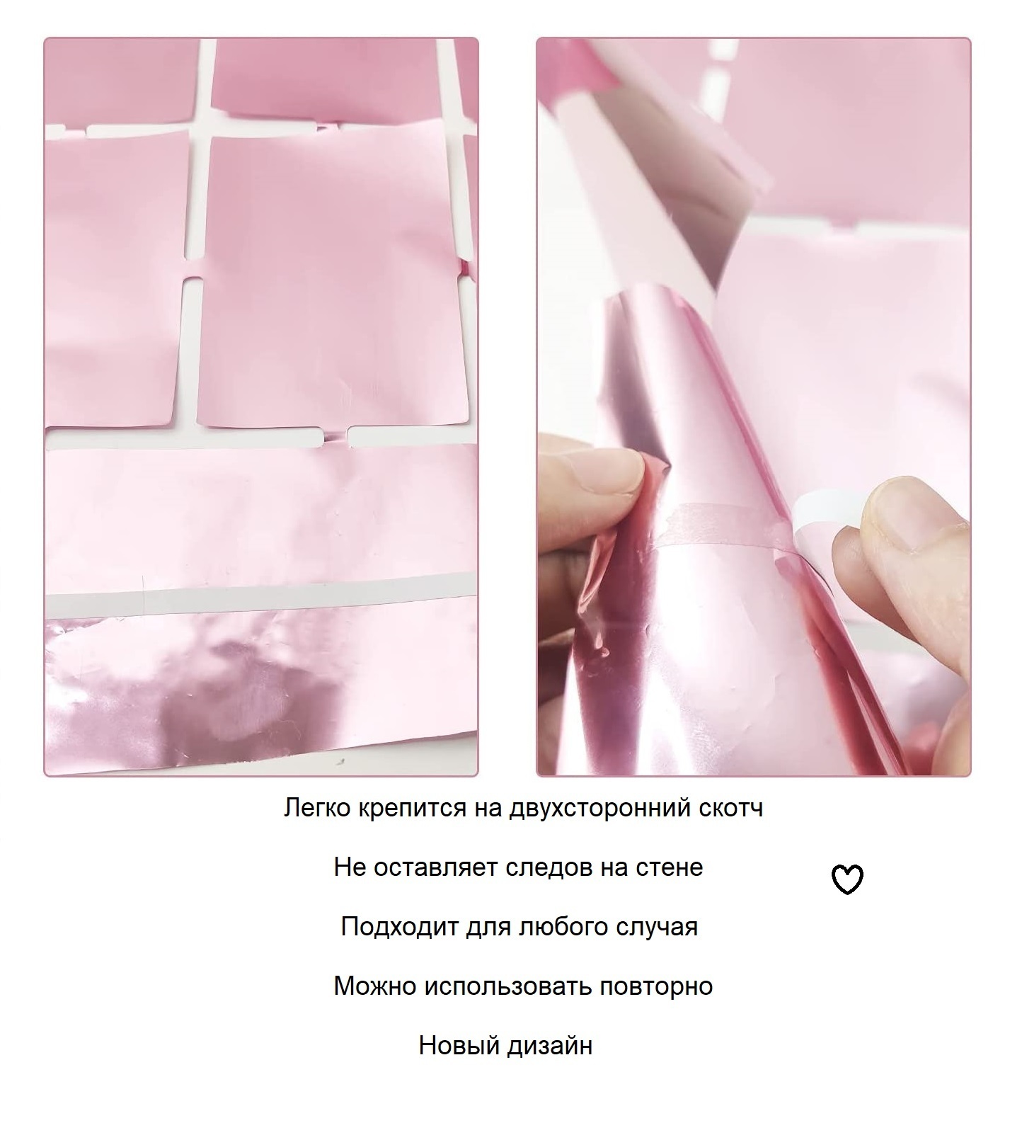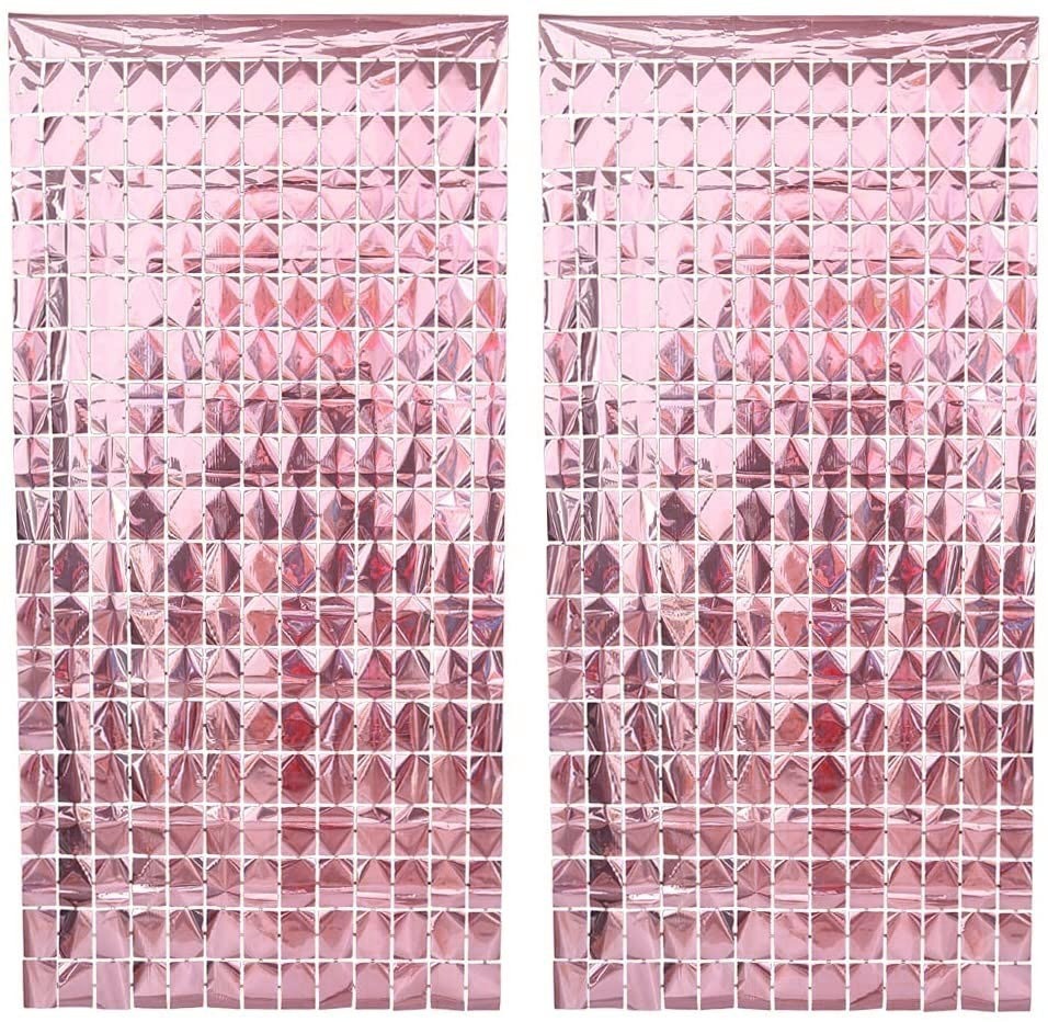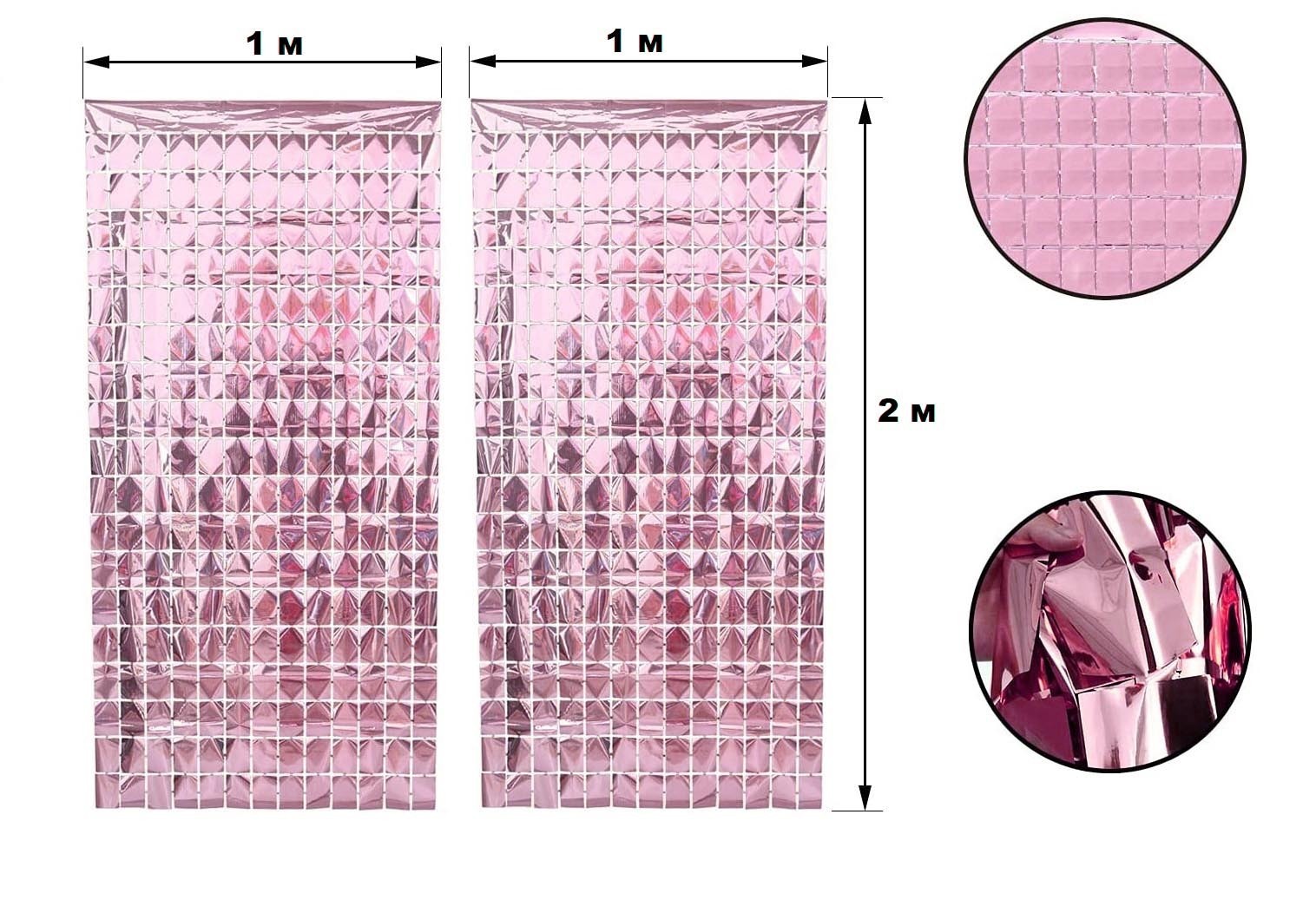 Фольгированный занавес для фотозоны Квадраты 2 шт., розовый (размер 100х200 см.)