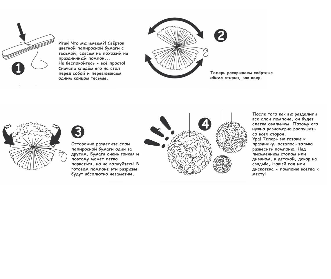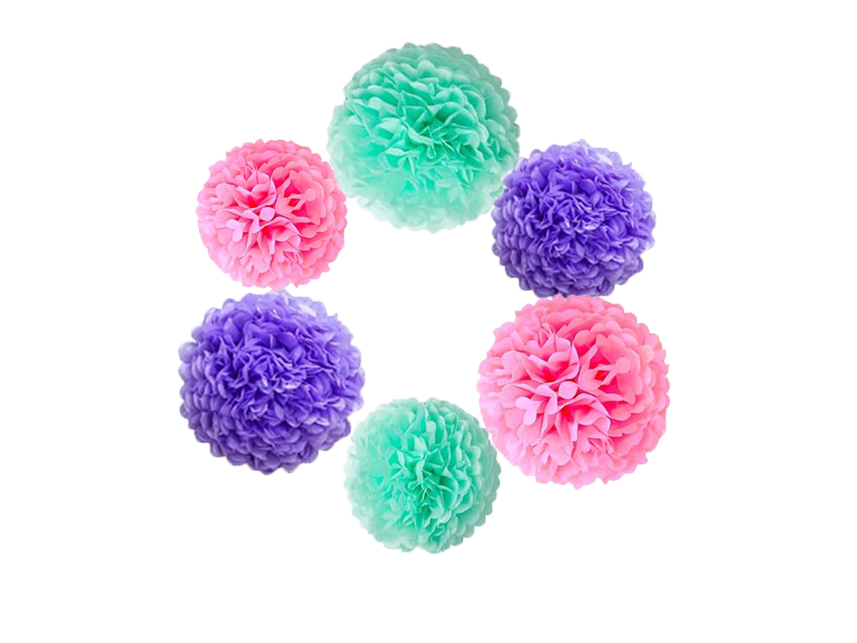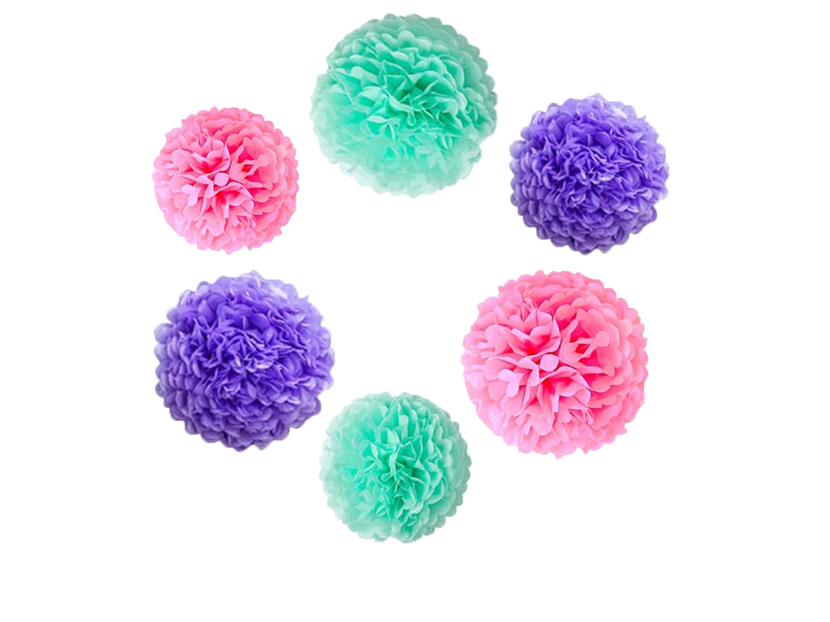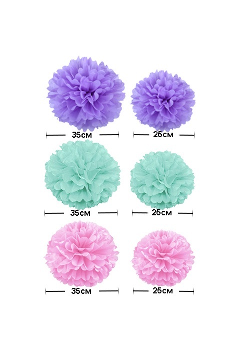 Набор помпонов из бумаги 6 шт.(сиреневый, мятный, розовый)