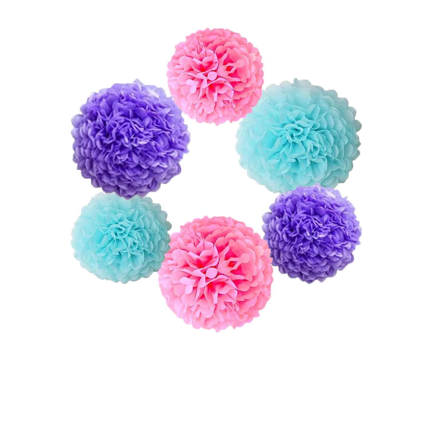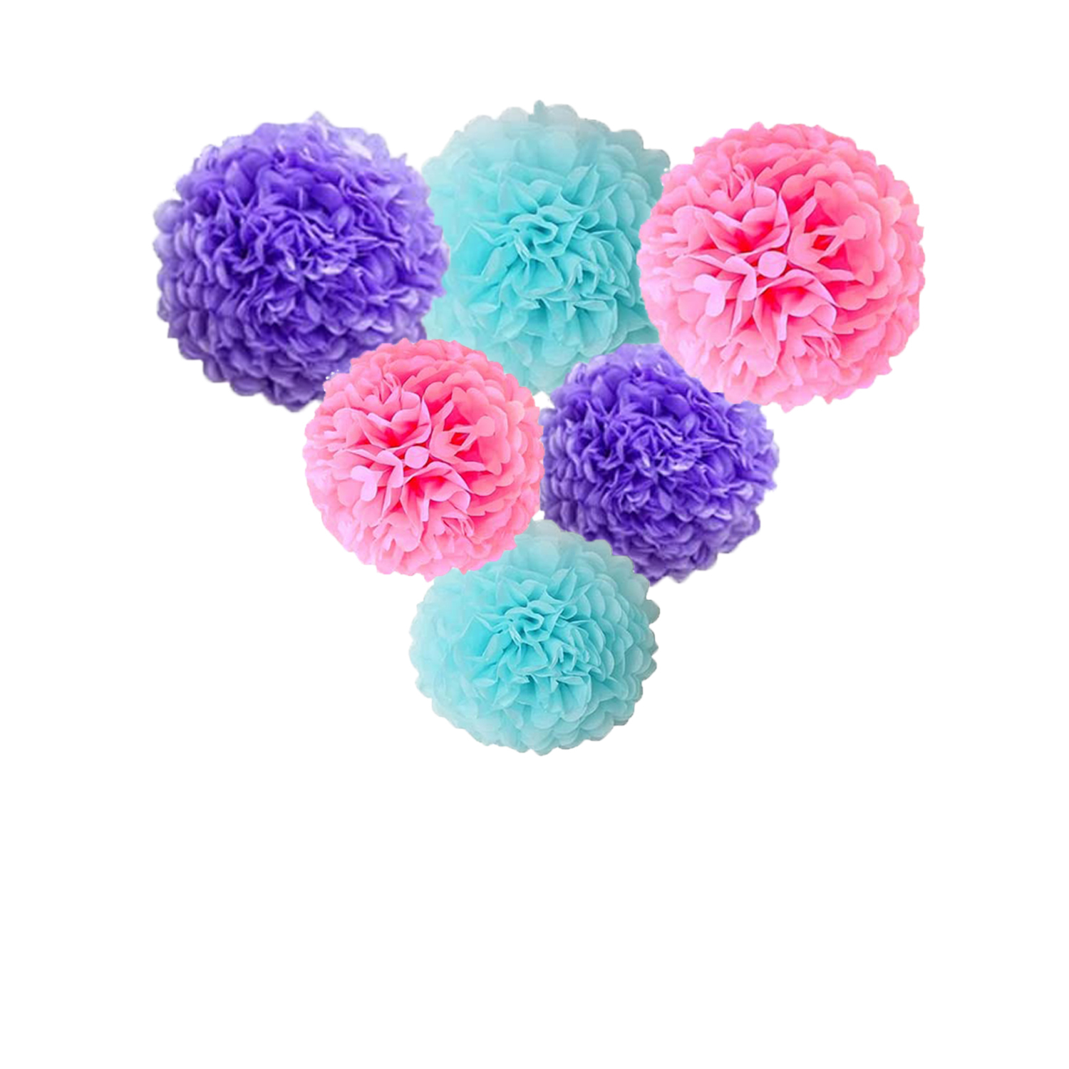 Набор помпонов из бумаги 6 шт.(сиреневый, голубой, розовый)