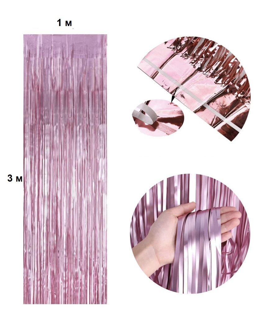 Занавес для фотозоны "Дождик", длина 3 метра, ширина 1 метр, в комплекте 2 шт. (нежно-розовый)