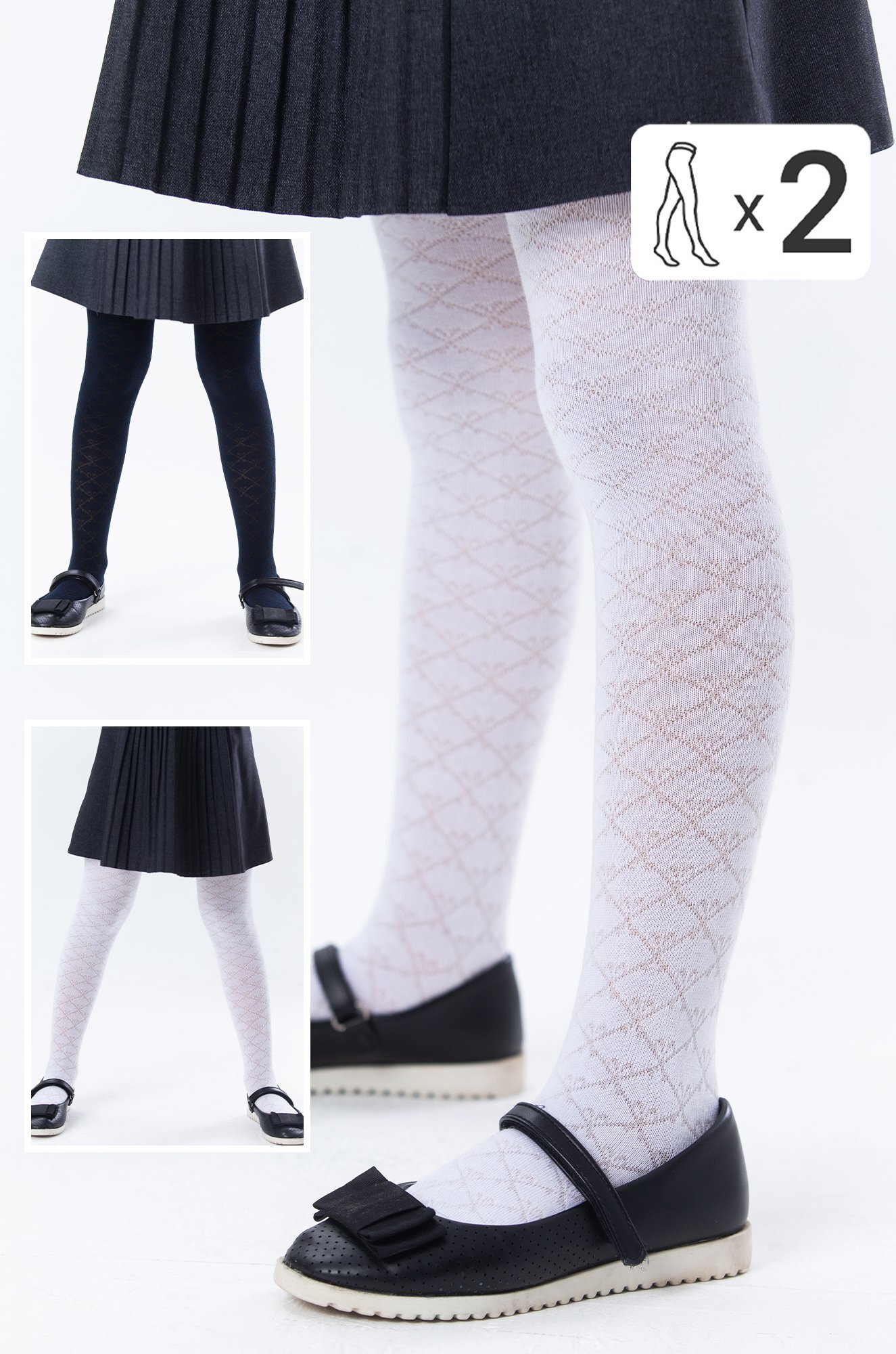 Комплект колготок Happyfox Для девочек белый,т.синий, 2 шт