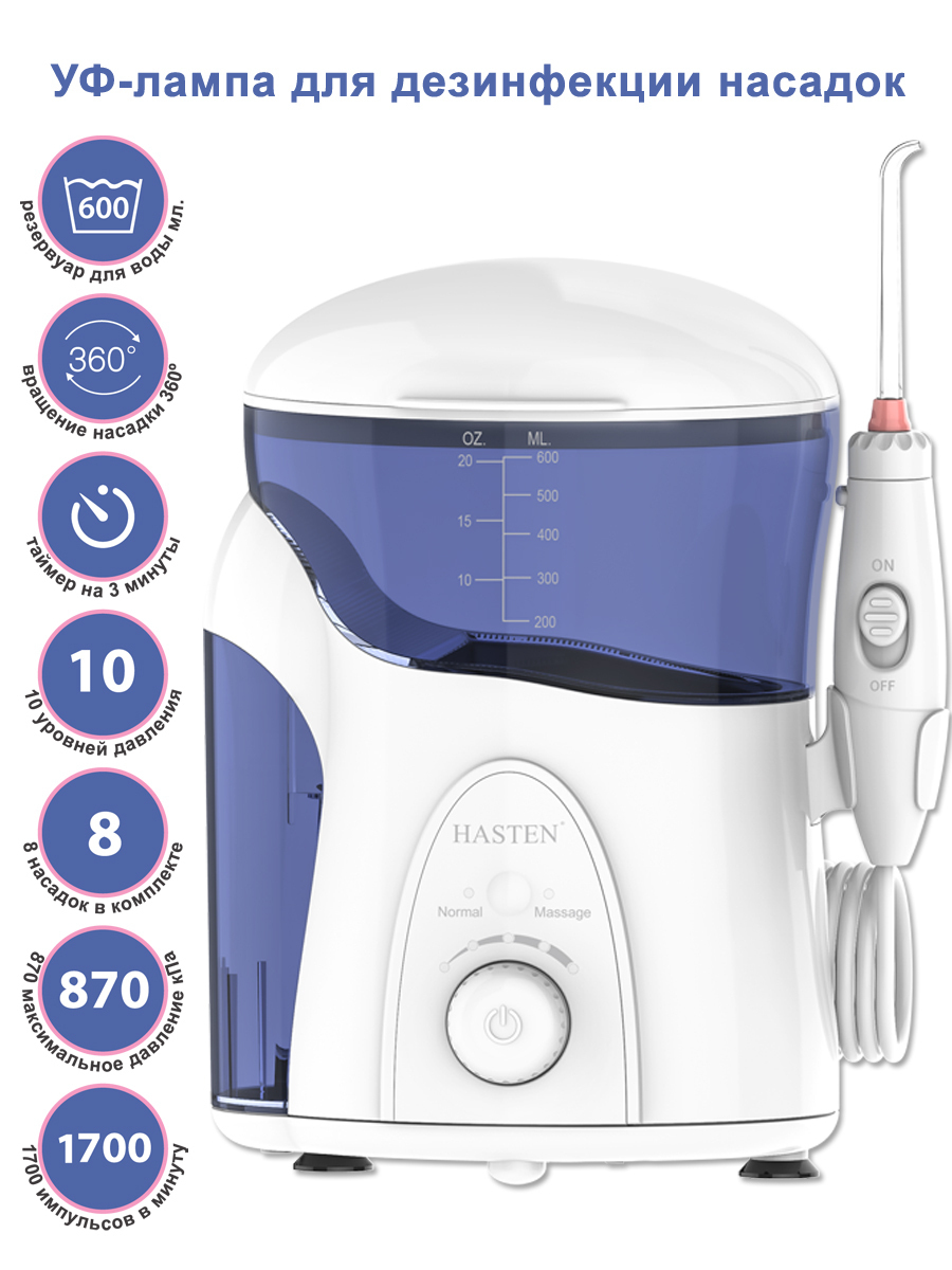 HASTEN Ирригатор полости рта - HAS830 (8 насадок, сумка-чехол в комплекте)