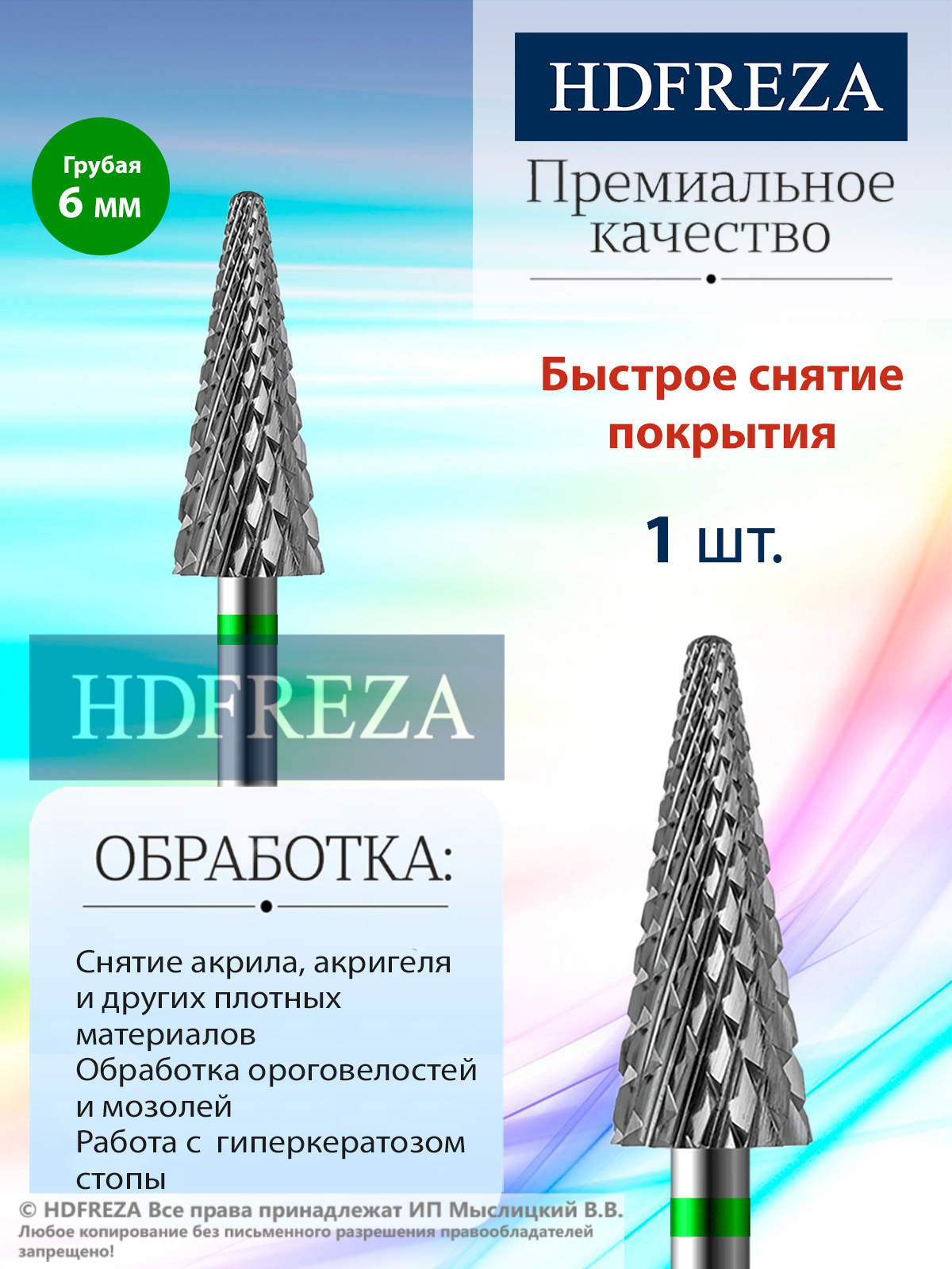 HDFREZA Фреза алмазная 808 161 504 040 Супер тонкая (упаковка 3 шт) (Конус)