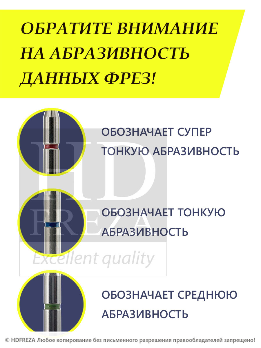 HDFREZA Фреза алмазная 808 141 514 033 Тонкая (упаковка 3 шт) (Цилиндр закругленный (торпеда))