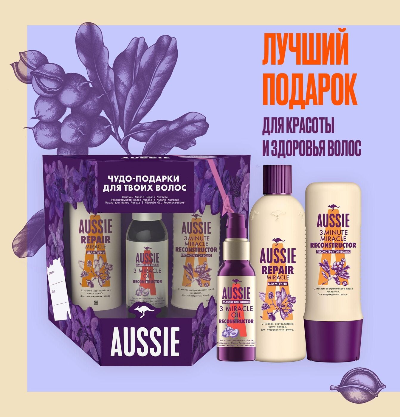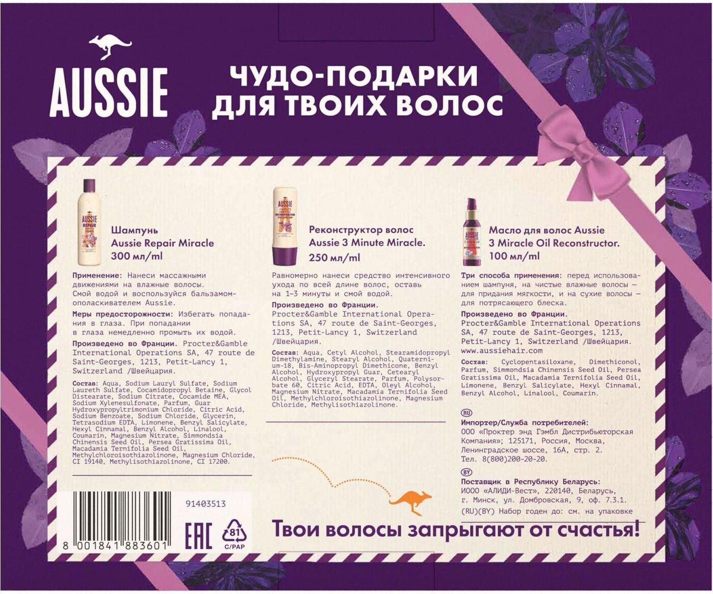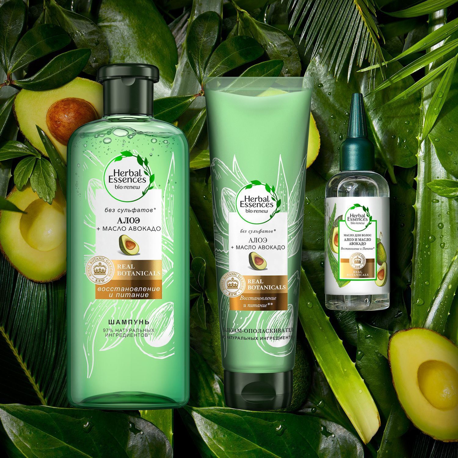 HERBAL ESSENCES Бальзам-ополаскиватель Алоэ и Авокадо 275мл + Масло для волос 100мл + Шампунь 380мл