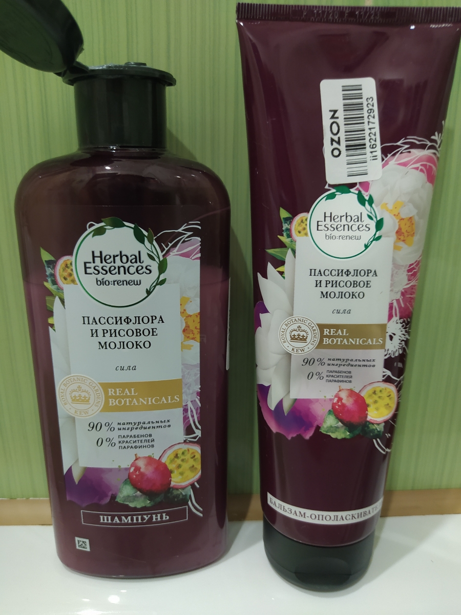 Herbal Essences Шампунь (250 мл) + Бальзам (180 мл), Пассифлора и Рисовое молоко, сила и блеск