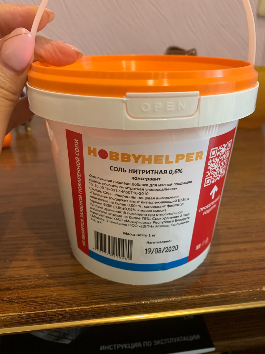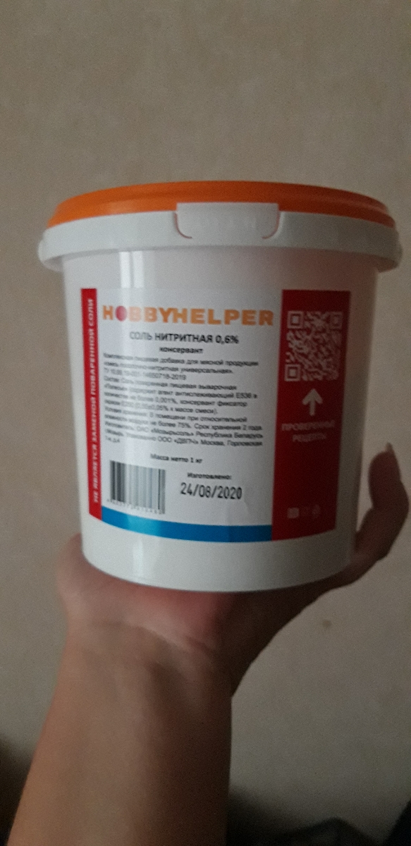 Соль нитритная для колбас HOBBYHELPER в ведре 1кг